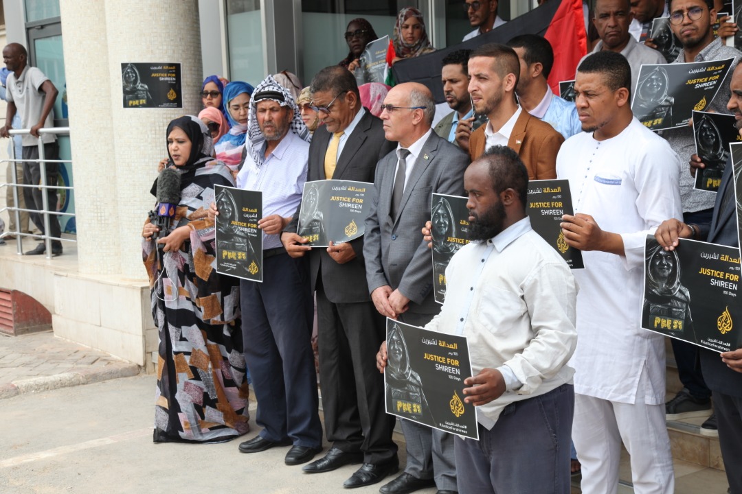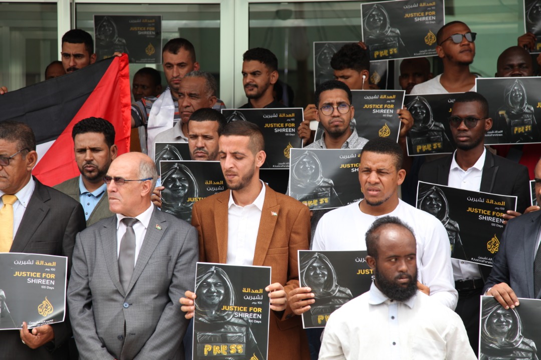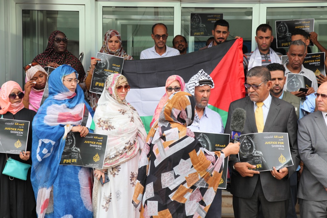 18/08/2022 - نواكشواط - شاركت سفارة دولة فلسطين ممثلة بالمستشار الإعلامي زكي قديح في وقفة نظمها مكتب قناة الجزيزة في موريتانيا بمناسبة مرور 100 يوم على إغتيال الصحفية الفلسطينة شرين أبو عاقلة ، وشارك عدد من ابناء الجالية الفلسطينية في موريتانيا ممثلة برئيس الجالية الأخ راشد الزغاري أبو زهير والعديد من الصحفيين الموريتانين من عدة قنوات ومواقع إعلامية ممثلين بنقيب الصحفين السيد أحمد طالب ولد معلوم ومديرة مكتب قناة الجزيرة في موريتانيا السيدة زينب اربيه .