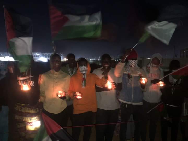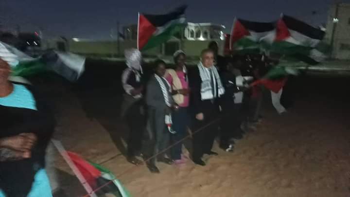 اليوم التالي تحيي سفارة دولة فلسطين بالتعاون مع حركة فتح و الجالية الفلسطينية و اتحاد الاطباء الفلسطيني و البعثة الشرطية و الطلبة الفلسطينيين ذكرى النكبة من خلال اشعال الشموع وسط حشد فلسطيني مميز و موريتاني شعبي كبير