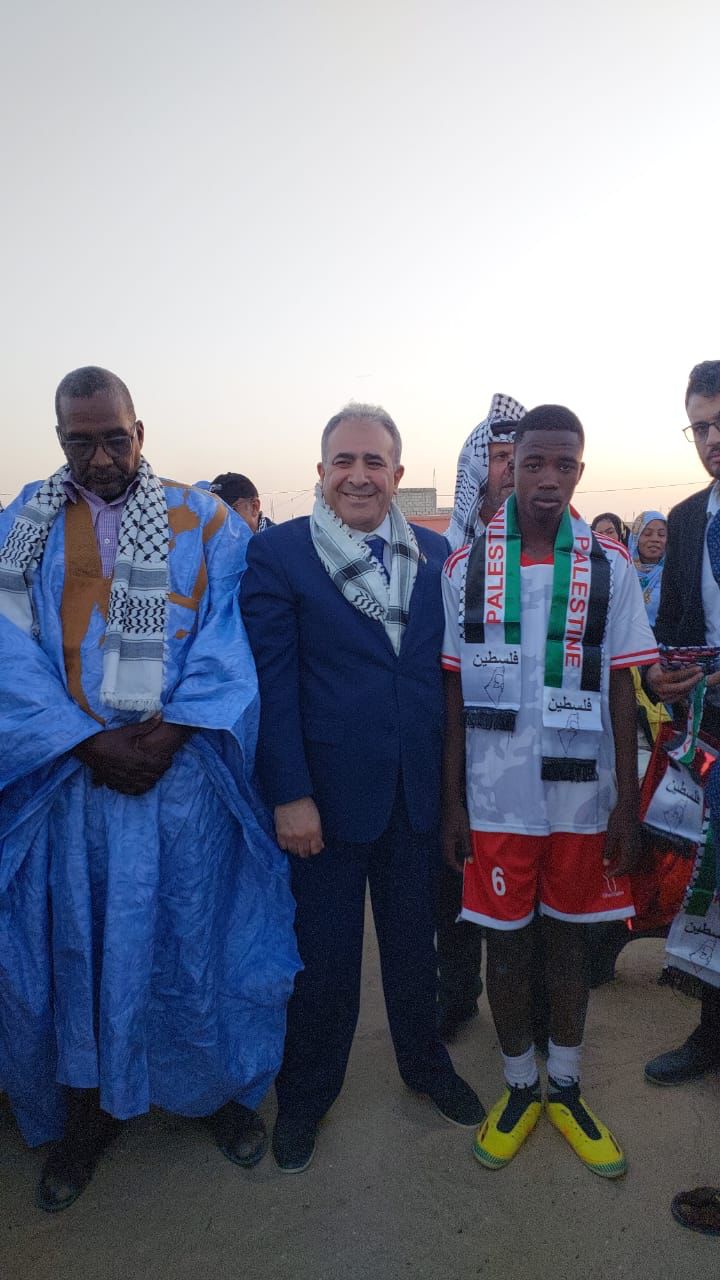 سلم سفير دولة فلسطين لدى موريتانيا د محمد الاسعد كأس فلسطين للدور النهائي للفرق الموريتانية لكرة القدم تحت عنوان كلنا فلسطين حيث فاز فريق سبورتينغ ملاح بكاس فلسطين ، حضر هذة التظاهرة العمدة و الحاكم و طاقم السفارة إضافة إلى الحشد الجماهيري الموريتاني و ألقى السفير كلمة شاكرا فيها الفرق الموريتانية التي لعبت بين بعضها البعض تحت عنوان كلنا فلسطين و تحدث السفير عن العدوان الغاشم من قبل الاحتلال الاسرائيلي ضد شعبنا و خاصة في قطاع غزة مؤكدا على حق الشعب الفلسطيني في الدفاع عن ارضه و بناء دولته المستقلة و عاصمتها القدس الشريف