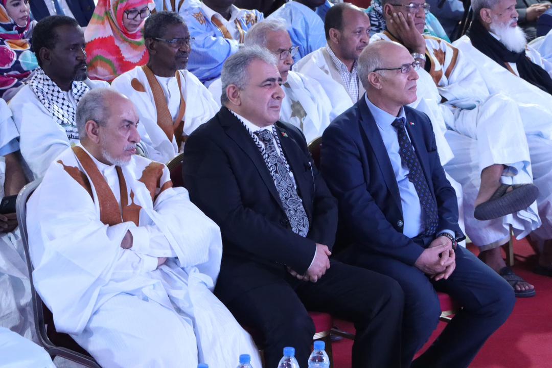 نواكشوط 19-5-2024 وفا- أحيت سفارة دولة فلسطين في نواكشوط، الذكرى الـ 76 للنكبة الفلسطينية، تحت شعار "فلسطين باقيه والاحتلال إلى زوال، بحضور رئيس الحزب الحاكم "حزب الانصاف" ماء العينين ولد ابيه، ووزير العدل محمد محمود ولد الشيخ عبد الله ولد بيه، ومدير الدعم والوسائل المشتركة السفير ماصار سيسوكو، ووفد رفيع المستوى من وزارة الخارجية الموريتانية.
