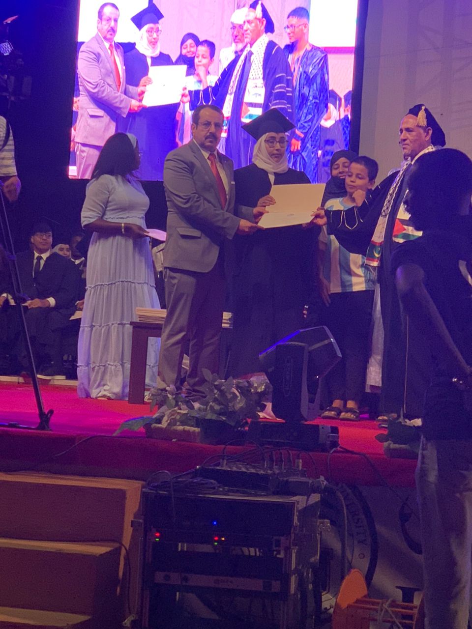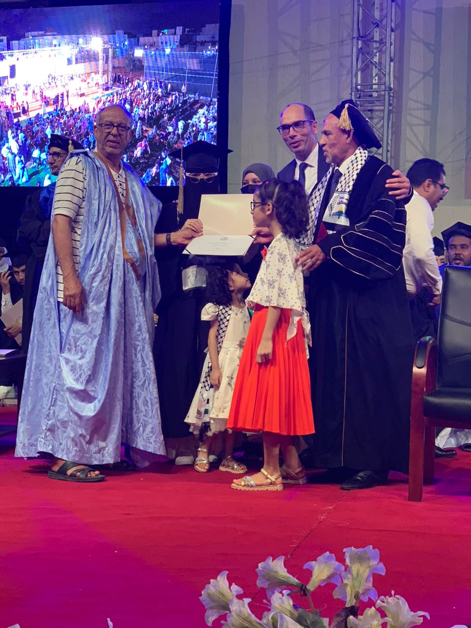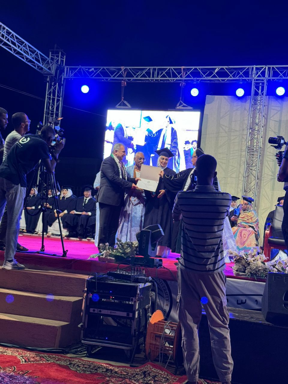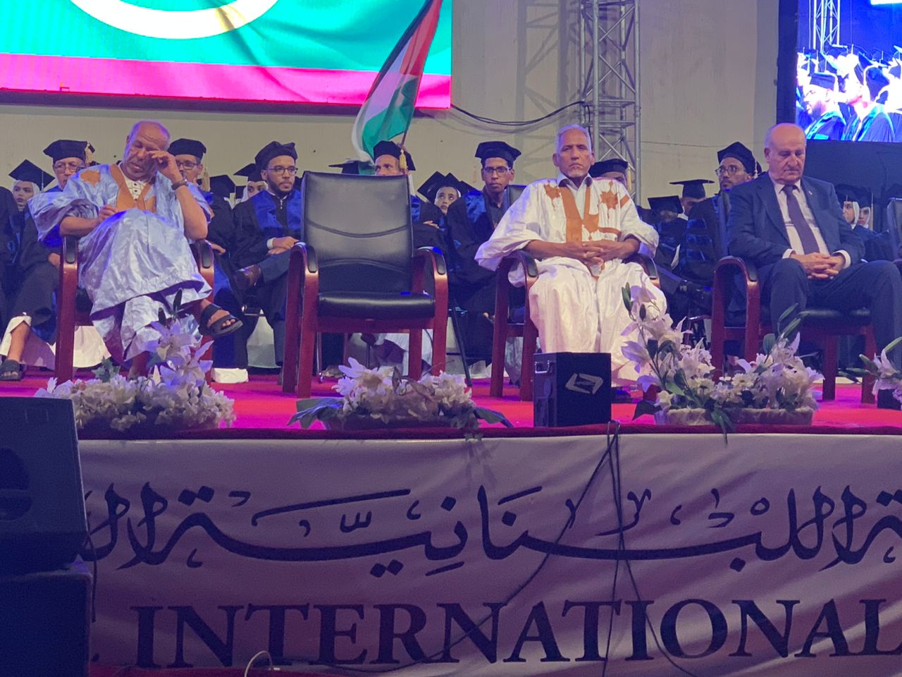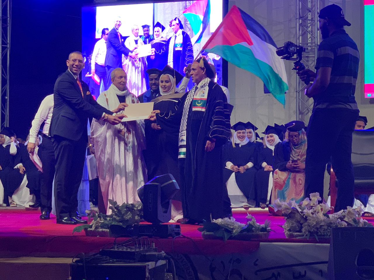 هذا وقد رفعت الأعلام الفلسطينية و خاصة الطلبة الموريتانيين الذين صعدوا للمنصة لاستلام الشهادات الجامعية