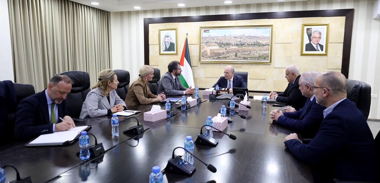 رام الله 25-3-2026 وفا- التقى رئيس الوزراء محمد مصطفى في مكتبه برام الله، وفداً من بعثة الاتحاد الأوروبي لدعم الشرطة الفلسطينية وسيادة القانون (EUPOL COPPS) ، وبعثة الاتحاد الأوروبي للمساعدة الحدودية لمعبر رفح (EUBAM Ra