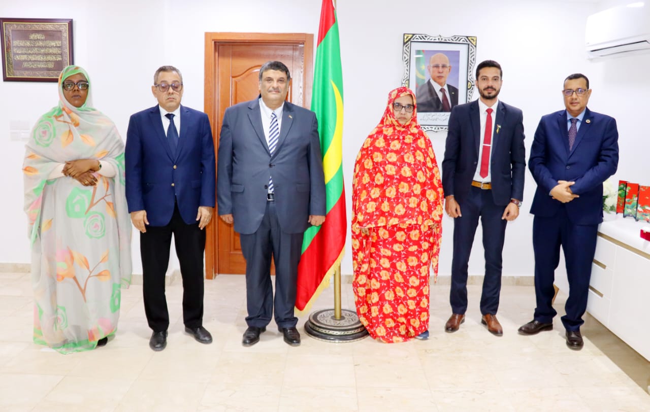 نواكشوط 14/04/2026 , استقبلت معالي وزيرة البيئة والتنمية المستدامة , السيدة/ مسعودة بنت بحام محمد لغظف , اليوم في مكتبها في نواكشوط , سعادة السفير/ بشير ابو حطب , سفير دولة فلسطين المعتمد في موريتانيا .