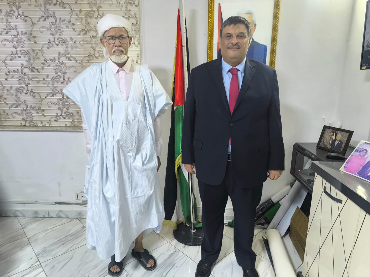 استقبل سعادة سفير دولة فلسطين / بشير ابو حطب بمقر السفارة اليوم الاثنين الموافق 06/04/2026 فضيلة الشيخ الخليل النحوي ,وذلك في زيارة اخوية تهدف الى تعزيز التعاون والتشاور في القضايا ذات الاهتمام المشترك .