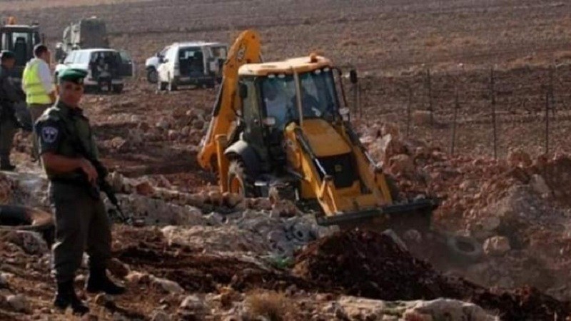 رام الله 4-1-2023 - نقلاً عن وكالة وفا- هدمت جرافات الاحتلال الإسرائيلي، اليوم الأربعاء، غرفا زراعية وسلاسل حجرية وردمت بئر مياه، واقتلعت مئات اشتال الزيتون، في بلدة المغير شمال شرق رام الله.