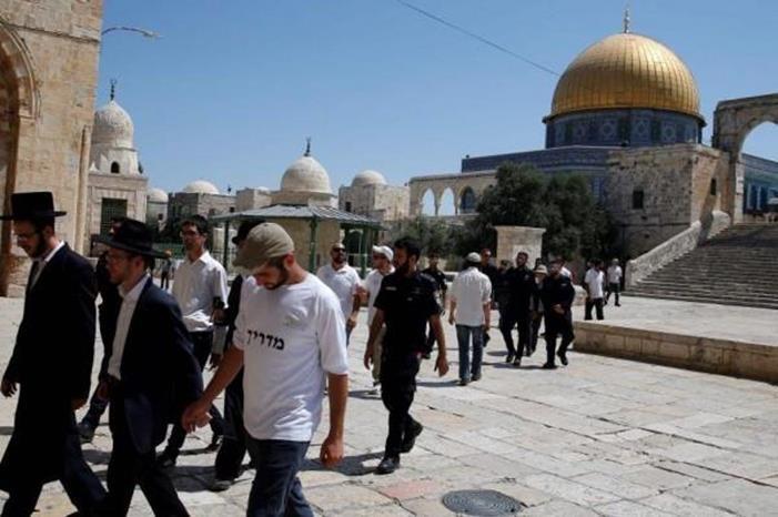 وأدى مستعمرون صلوات تلمودية خلال اقتحامهم المسجد الأقصى بحماية قوات الاحتلال.