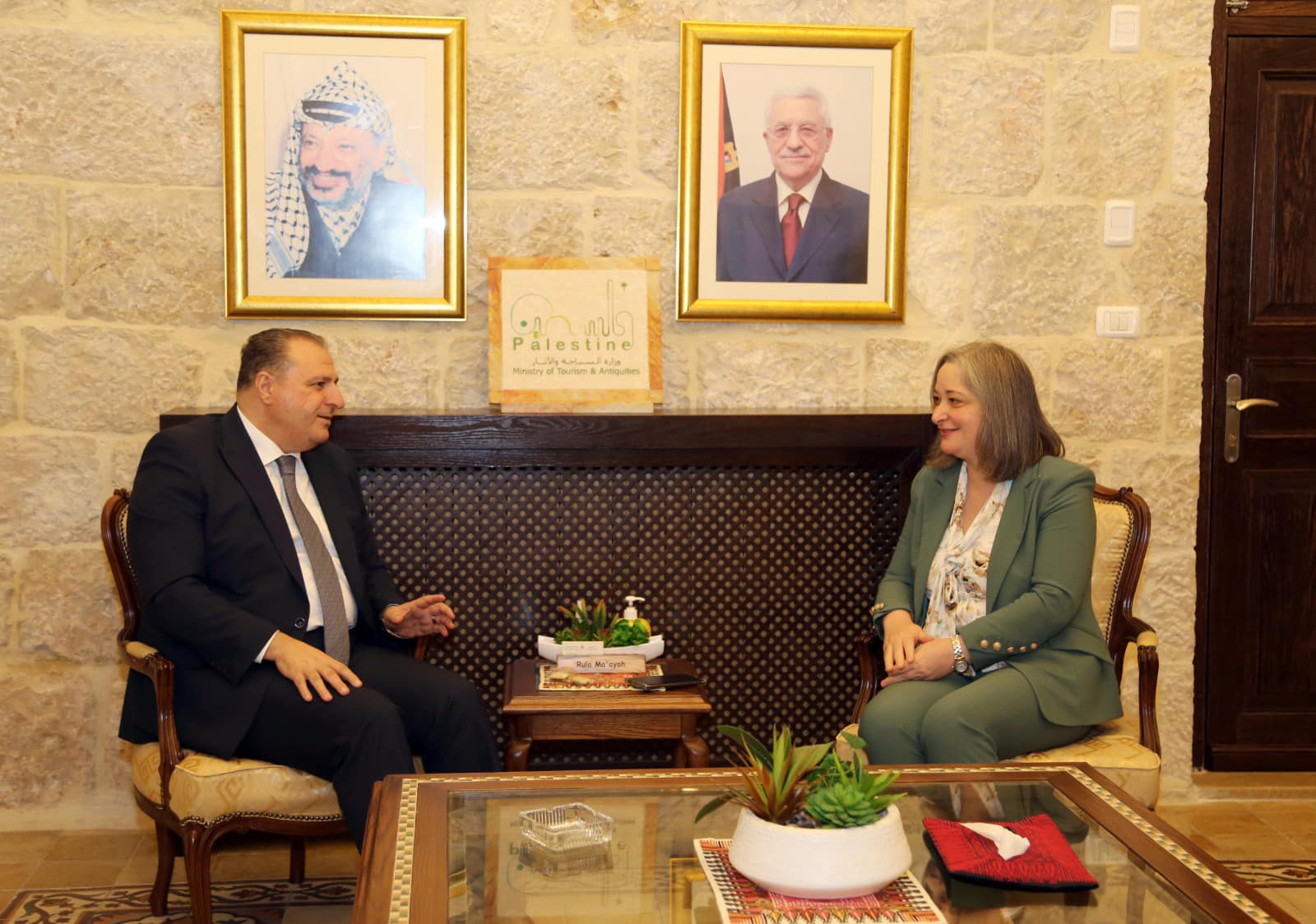 اكدت وزيرة السياحة والاثار السيدة رُلى معايعة عمل وزارة السياحة والاثار على تطوير المواقع الاثرية في قطاع غزة، حديث الوزيرة معايعة جاء خلال توقيع اتفاقية لتطوير موقع دير القديس هيلاريون – تل أم العامر الأثري في قطاع غزة، حيث تم توقيع الاتفاقية مع القنصل الفرنسي العام السيد رينيه توكاز وبحضور السيدة نهى بوازيري مديرة مكتب اليونسكو في فلسطين و السيد مارتين مدير الوكالة الفرنسية للتعاون الدولي والسيد جهاد ياسين مدير عام المتاحف و التنقيبات في وزارة ال