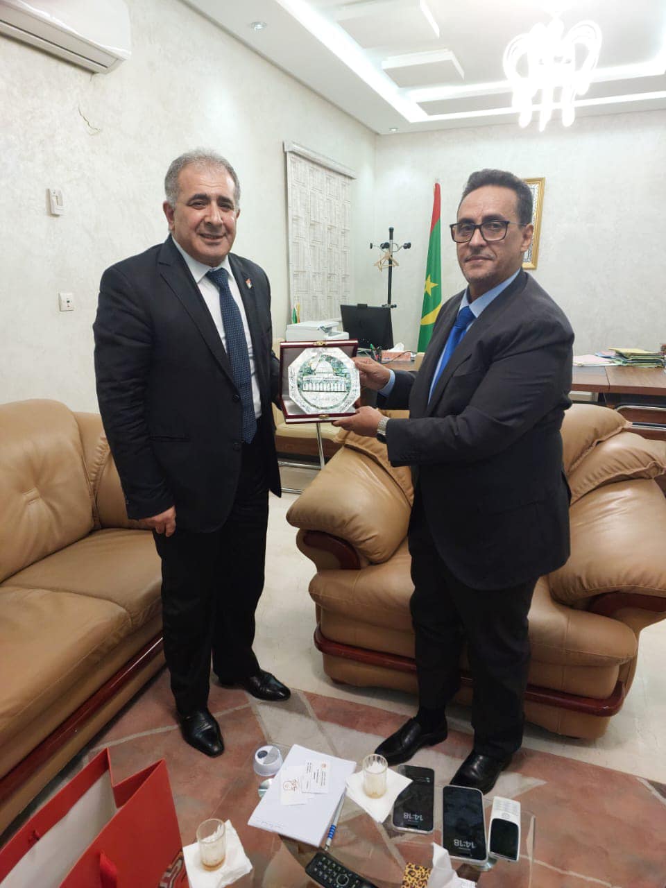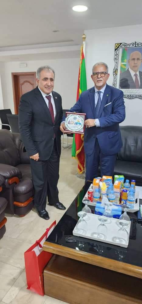 30/08/2023 - نواكشوط - جرى لقاء بين رئيس جهة اترارزة الاستاذ محمد ولد الشيخ و كلاً من المستشار :زكي قديح و الاخ : جمال الدين الصباح و بحضور نائب رئيس جهة اترارزة السيد : احمد كوري ولد امينه و رئيس لجنة الزراعة السيد : المختار محمد طفيل ، وتناول الطرفان مد جسور التعاون بين البلدين الشقيقين و من اهم الوجهات الاقتصادية على الاصعد الزراعية بقسميها الفلاحي و الحيواني و كذلك الصيد البحري و امكانية العمل على توفير الخبرات الفلسطينية لجهة اترارزة و تنشيط ا