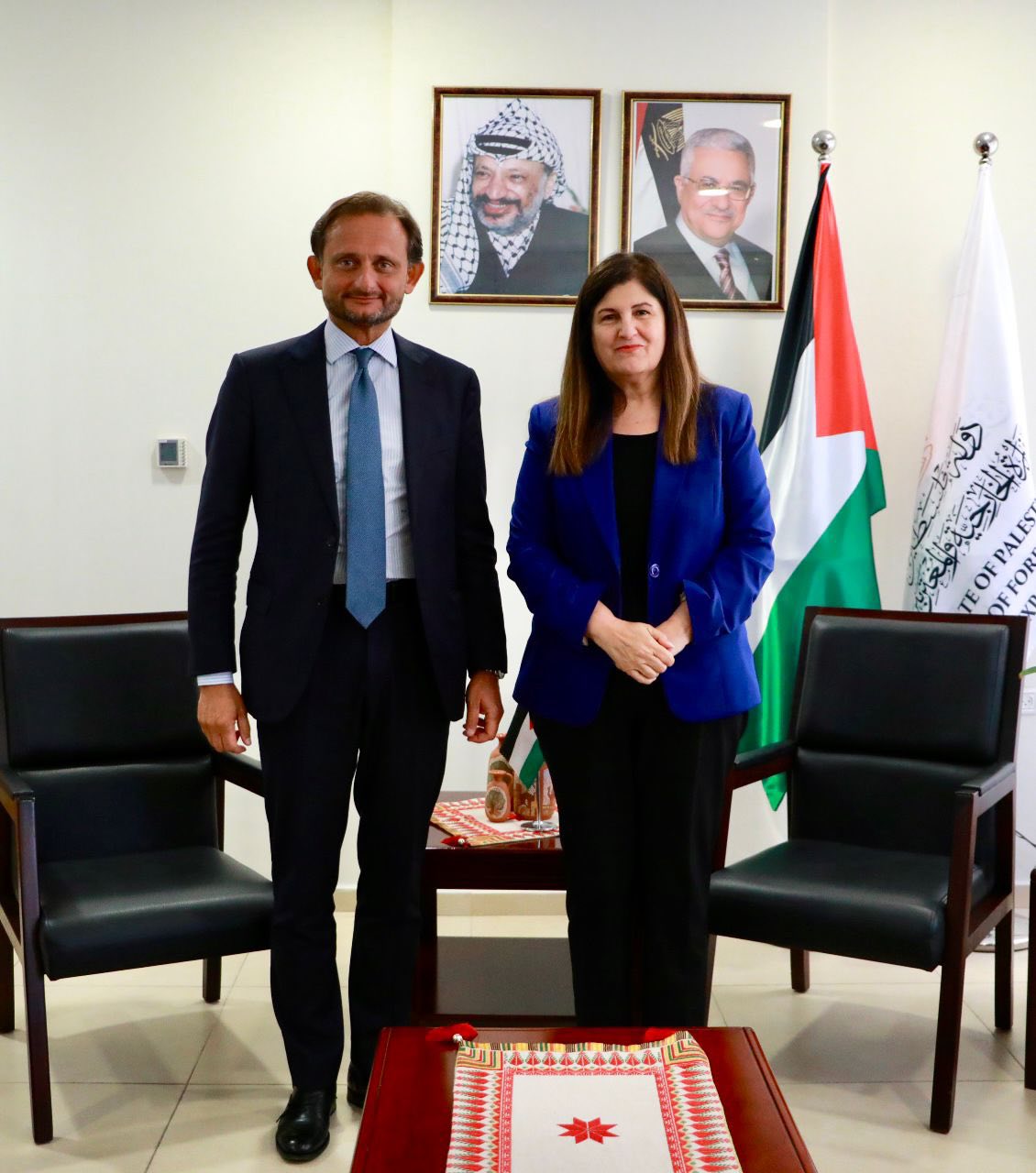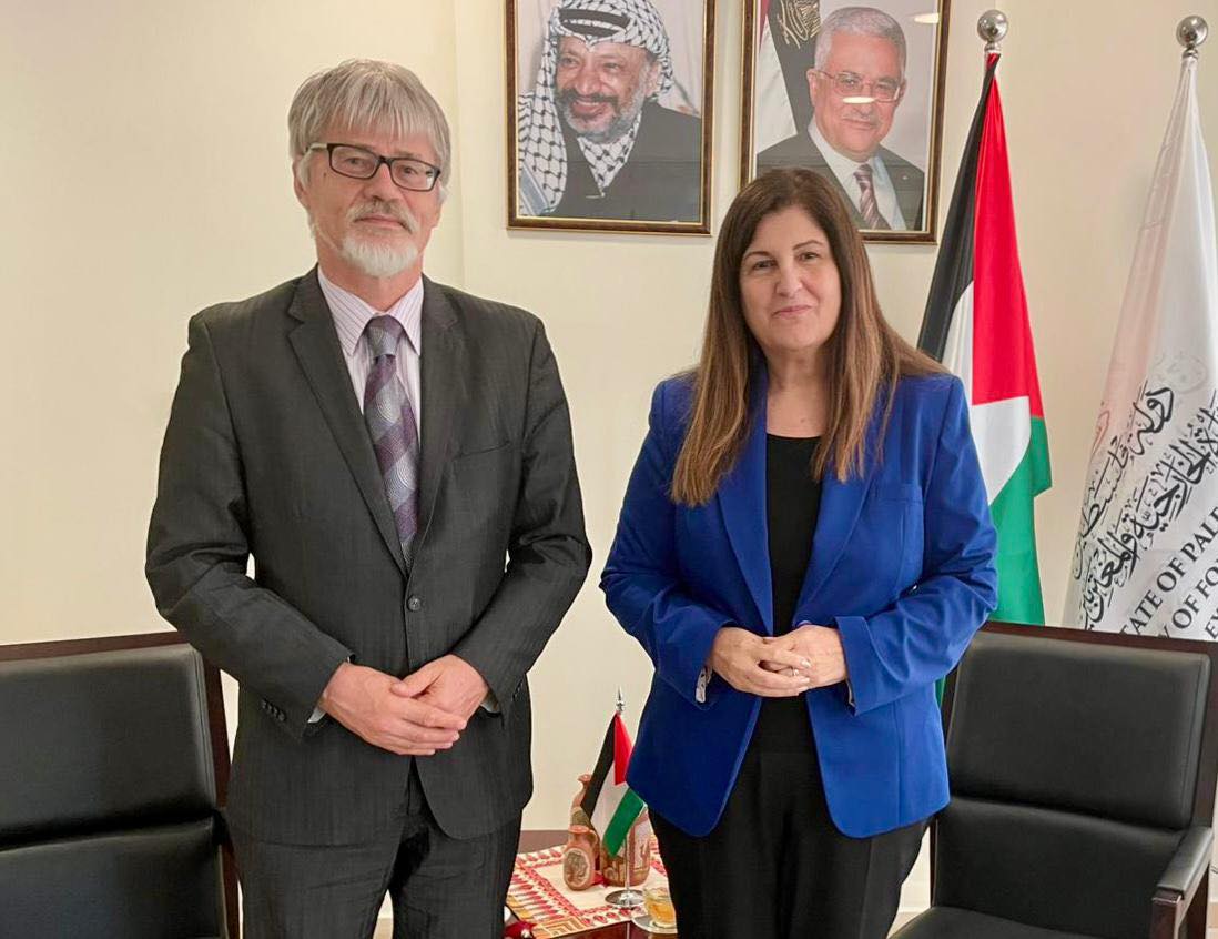 بحثت وزيرة الخارجية والمغتربين د. فارسين أغابكيان شاهين مع وزير الخارجية اليوناني جورجيوس جيرابيتريتيس سبل تعزيز العلاقات الثنائية بين فلسطين واليونان، مؤكدة أهمية تتويج هذه العلاقات بالاعتراف بدولة فلسطين كخطوة نحو تنفيذ حل الدولتين وتحقيق الأمن والاستقرار في المنطقة.