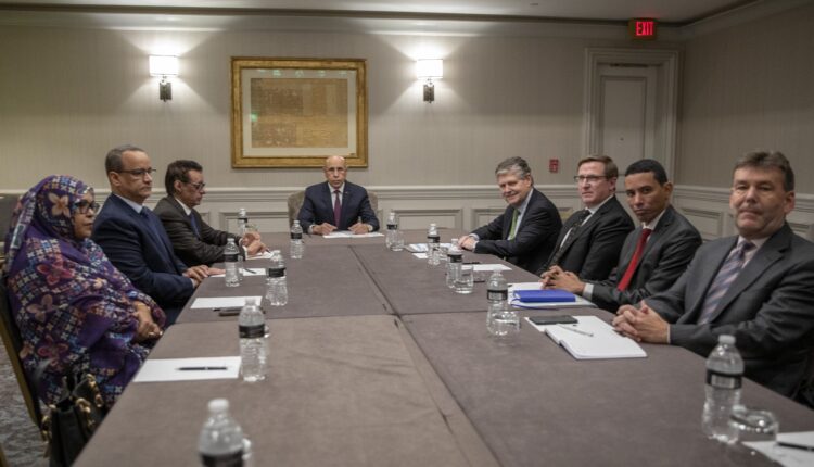 16/12/2022 - نواكشوط - استقبل معالي مفوض حقوق الإنسان والعمل الإنساني والعلاقات مع المجتمع المدني، السيد الشيخ أحمدو ولد أحمد سالم ولد سيدي، اليوم الجمعة بمكتبه في نواكشوط، بعثة من الأمم المتحدة، برئاسة السيدة نيكول أملين، عضو اللجنة المكلفة بالقضاء على التمييز ضد المرأة، رئيسة المعهد الدولي لحقوق الإنسان والسلام، وعضوية مدير المعهد الدولي لحقوق الإنسان والسلام السيد جوناس بوشي.