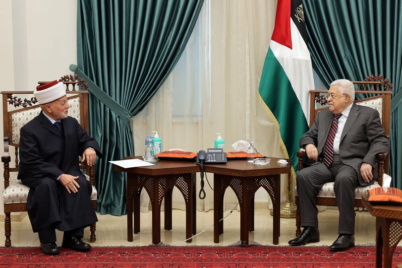 رام الله 27-10-2022 - استقبل رئيس دولة فلسطين محمود عباس، اليوم الخميس، بمقر الرئاسة في مدينة رام الله، مفتي القدس والديار الفلسطينية الشيخ محمد حسين.