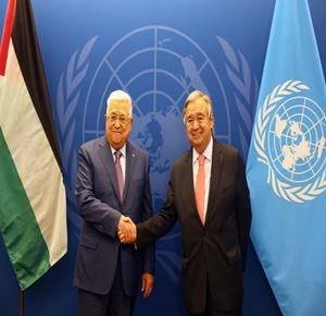 نيويورك 20-9-2022 -جتمع رئيس دولة فلسطين محمود عباس، اليوم الثلاثاء، مع الأمين العام للأمم المتحدة انطونيو غوتيريش، بمقر الأمم المتحدة في نيويورك، على هامش اجتماعات الدورة الـ 77 للجمعية العامة.