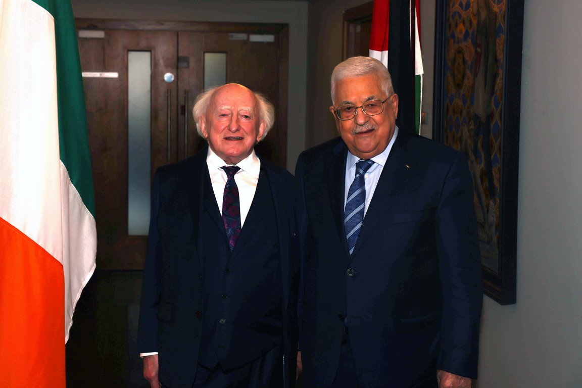 الرئيس محمود عباس يلتقي نظيره الإيرلندي مايكل هينغز
