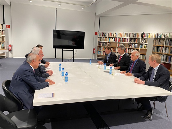 التقى وزير الخارجية د.رياض المالكي الممثل الاعلى للسياسة الخارجية والأمنية للاتحاد الأوروبي، السيد جوزيب بوريل، امس في برشلونة، على هامش إجتماعات المنتدى السابع لوزراء خارجية الدول الاعضاء في الاتحاد من اجل المتوسط و مشاركته ايضاً في اجتماعات سياسة الجوار للاتحاد الأوروبي.