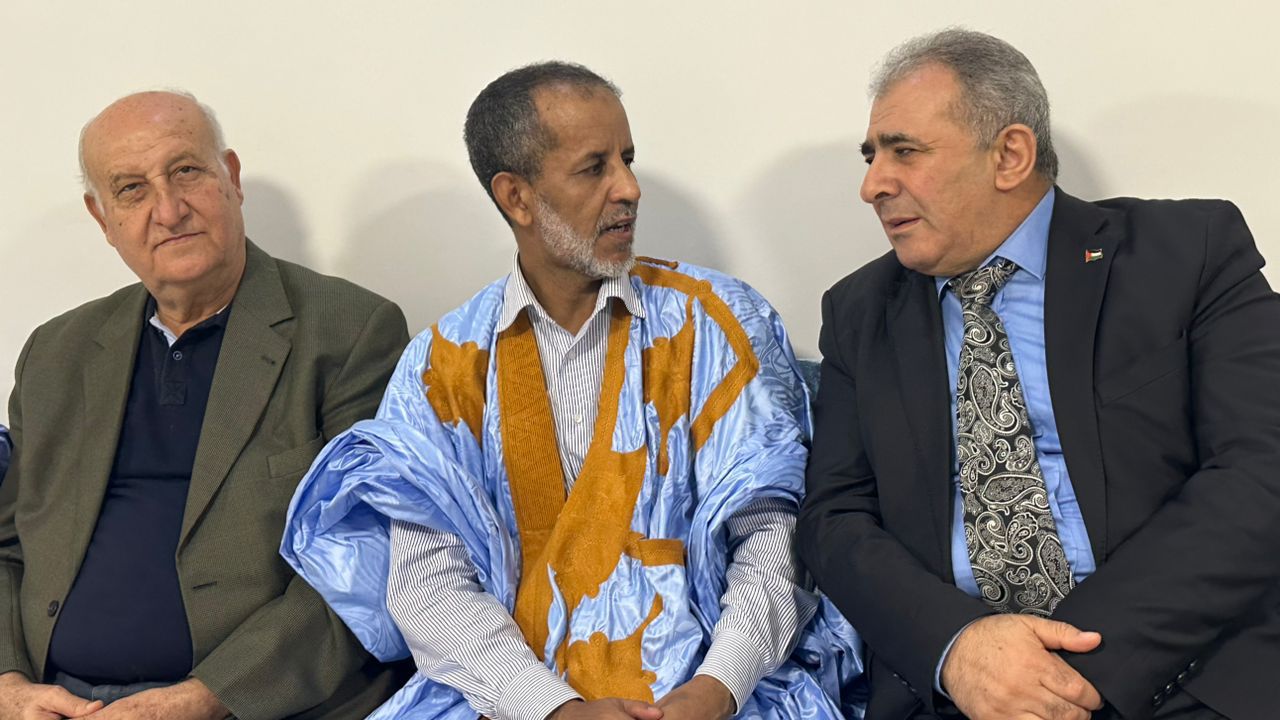 12/06/2025 - استقبل سفير دولة فلسطين لدى موريتانيا الدكتور محمد الاسعد بحضور الاخ المستشار زكي قديح شقيقه سفير جمهورية مصر العربية الاخ أحمد محمد عبد الحميد طايع في سفارة دولة فلسطين