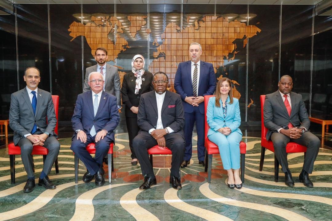 جاء ذلك خلال استقباله، اليوم الجمعة، في القصر الرئاسي بالعاصمة ويندهوك، وزير الخارجية والمغتربين رياض المالكي الذي يقوم والوفد المرافق بزيارة رسمية لناميبيا تستمر ليومين.