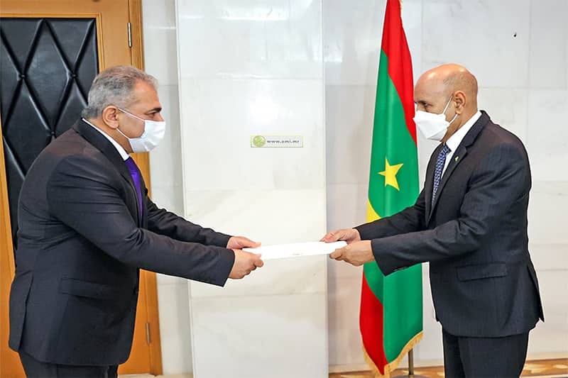 08-04-2021 - نواكشوط - تسلم فخامة رئيس الجمهورية السيد محمد ولد الشيخ الغزواني صباح اليوم الخميس بالقصر الرئاسي في انواكشوط أوراق اعتماد سعادة السيد محمد قاسم أسعد الأسعد، بصفته سفيرا فوق العادة وكامل السلطة لدولة فلسطين لدى الجمهورية الإسلامية الموريتانية.