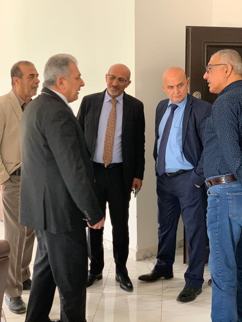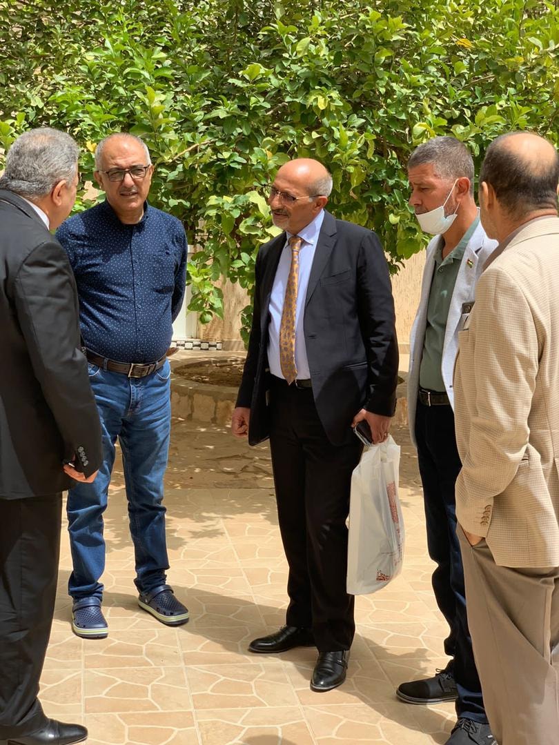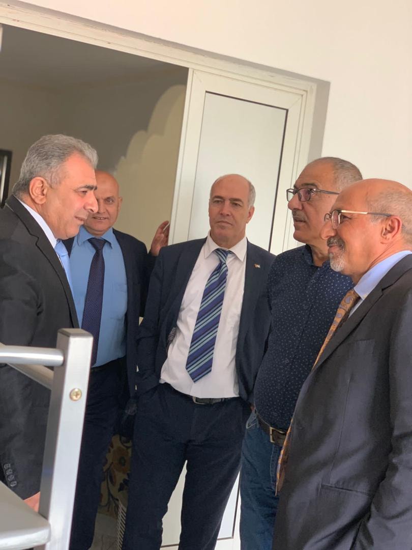 زيارة للاخوين محمد اللحام عضو المجلس الثوري لحركة فتح و الاخ ناصر شيوخي رئيس مجلس إدارة الكلية العصرية الجامعية لسفارة دولة فلسطين و كما قام الوفد بتسليم سعادة السفير درع تذكاري بإسم نقابة الصحفيين الفلسطينيين بمعية الاخ محمد اللحام