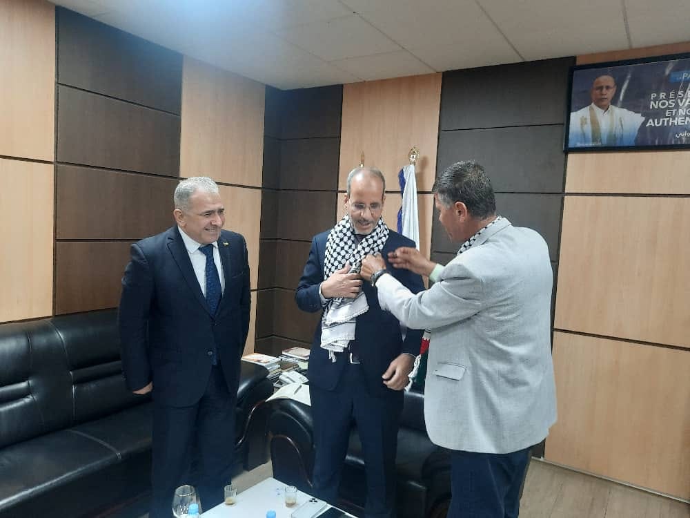 استقبل رئيس الحزب الحاكم السيد محمد ماء العينين ولد أييه بمكتبه اليوم الاثنين 10/10/2022 الدكتور محمد الأسعد، سفير دولة فلسطين لدى موريتانيا ، وقد تناول اللقاء العلاقات التاريخية بين الشعبين الشقيقين الموريتاني والفلسطيني، وموقف موريتانيا الثابت من دعم القضية الفلسطينية على كافة الأصعدة.