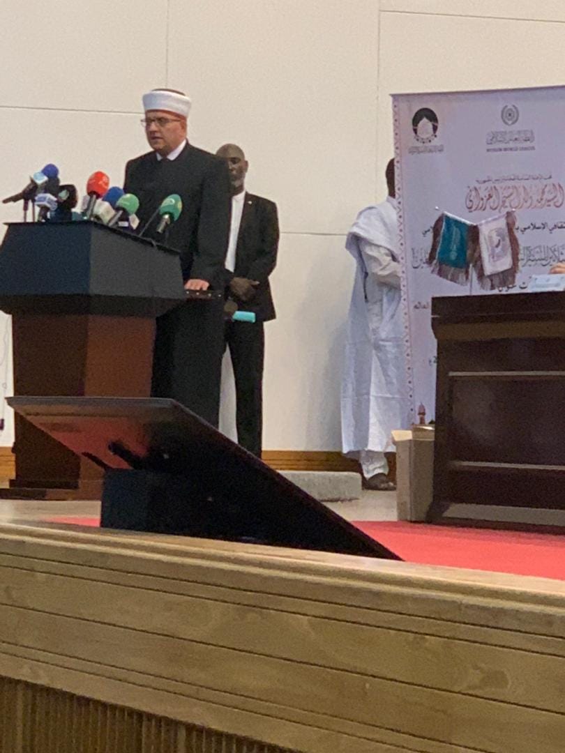 21/10/2022 - نواكشوط - سماحة الشيخ حاتم البكري وزير الأوقاف والشؤون الدينية خلال مشاركته في المؤتمر الدولي الخامس والثلاثين للسيرة النبوية ومؤتمر هيئة علماء المسلمين والذي عقد هذا العام تحت عنوان " القيم الأخلاقية في السيرة النبوية وأثرها في نشر السلام حول العالم" في الفترة 21-23 أكتوبر 2022 في العاصمة الموريتانية نواكشوط