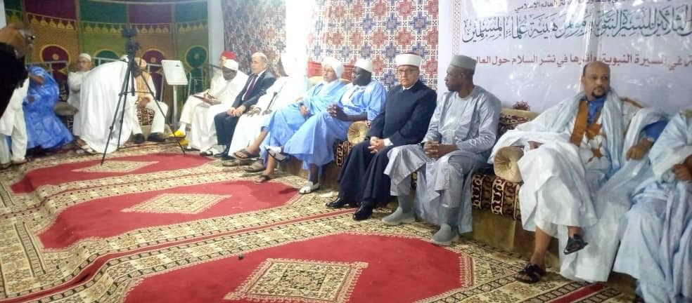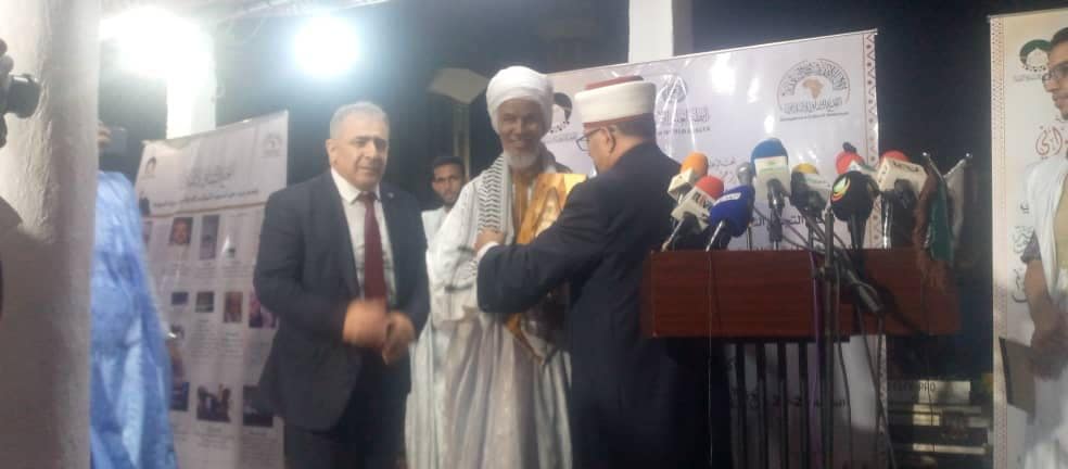 23/10/2022 - نواكشوط - سماحة الشيخ حاتم البكري وزير الاوقاف و الشؤون الدينية خلال الجلسة الختامية للمؤتمر الدولي الخامس والثلاثون للسيرة النبوية و مؤتمر هيئة علماء المسلمين في العاصمة الموريتانية نواكشوط ، والذي عقد هذا العام تحت عنوان " القيم الاخلاقية في السيرة النبوية وأثرها في نشر السلام حول العالم التي ألقى فيها كلمة منبر القدس ، مؤكداً على أهمية القدس و ضرورة دعمها و تثبيت أهلها بناء على وصية الرسول صلي الله عليه و سلم الذي ينعقد المؤتمر منطلقاً من سيرته النبوية العطرة هذه السيرة التي تضمنت القدس والمسجد الأقصى سنة قولية من خلال التأكيد على فضائلها و أهميتها الدينية والفعلية من خلال رحلة الإسراء والمعراج