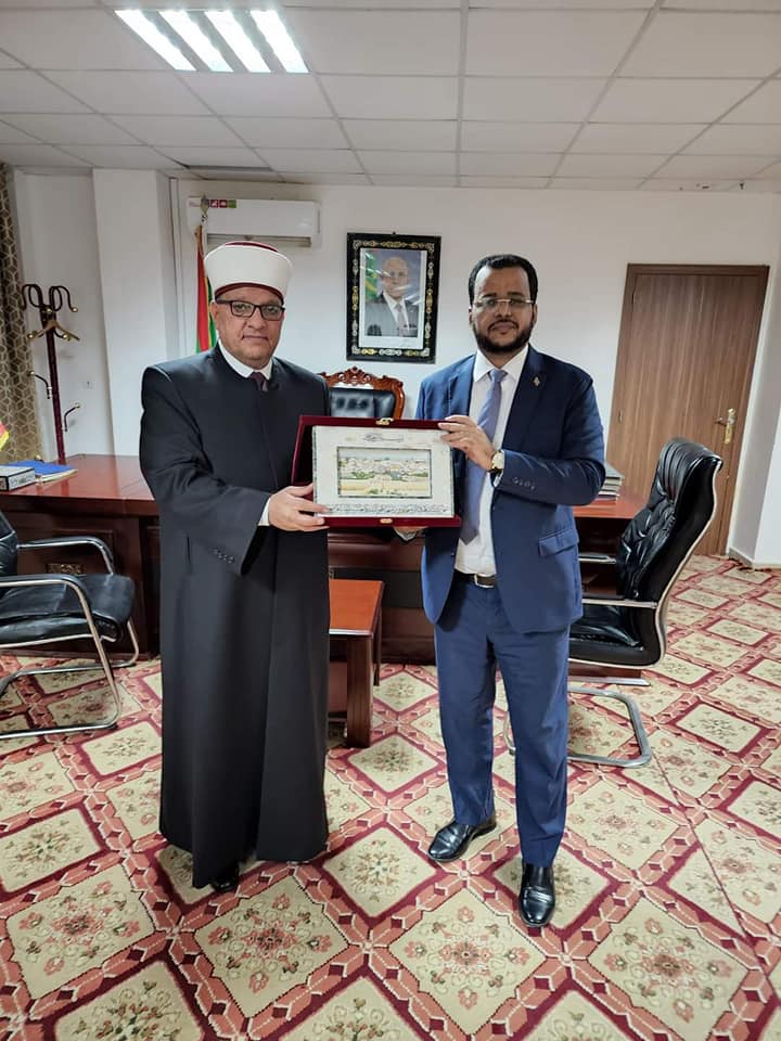 24/10/2022 - نواكشوط - سماحة الشيخ حاتم البكري وزير الأوقاف والشؤون الدينية بمرافقة سعادة السفير الفلسطيني في نواكشوط الدكتور محمد الأسعد يلتقي بمعالي الدكتور الداه ولد أعمر طالب وزير الشؤون الإسلامية والتعليم الأصلي في الحكومة الموريتانية حيث تبادلا الحديث حول التعاون بين وزارة الأوقاف والشؤون الدينية ووزارة الشؤون الإسلامية والتعليم الأصلي واتفقا على تنظيم مذكرة تفاهم قريبا بينهما لرسم معالم الطريق لمرحلة تعاون قادمة بين فلسطين وموريتانيا.