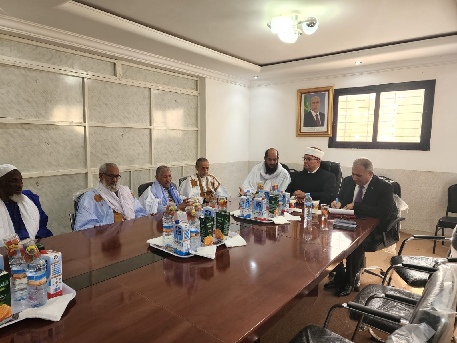 نواكشوط : التقى سماحة الشيخ حاتم البكري وزير الأوقاف والشؤون الدينية الدكتور أسلم ولد سيد المصطف رئيس المجلس الأعلى للفتوى والمظالم الموريتاني ورئيس هيئة علماء موريتانيا الشيخ ولد صالح أمين بحضور سفير دولة فلسطين لدى الجمهورية الإسلامية الموريتانية سعادة الدكتور محمد الأسعد .