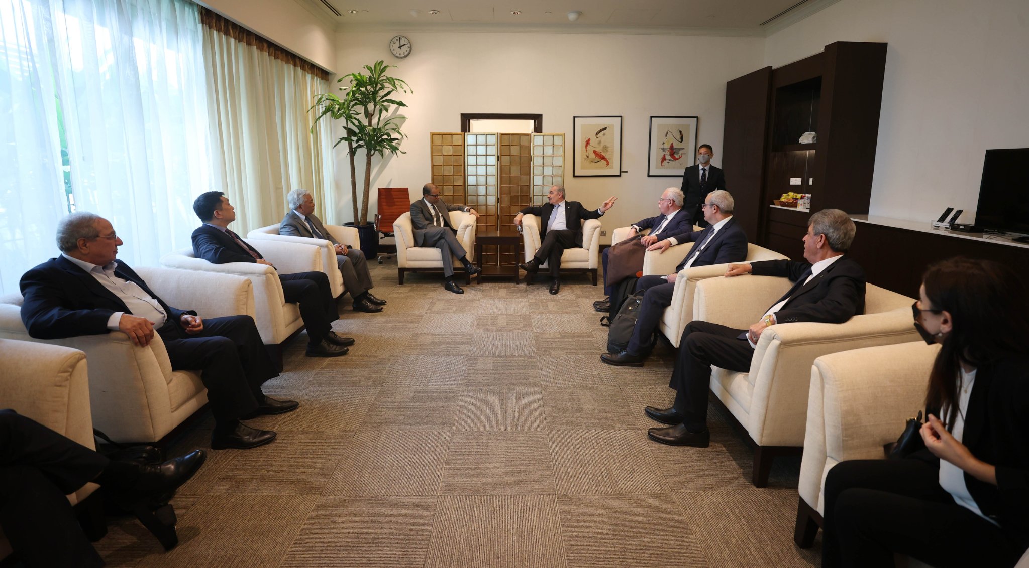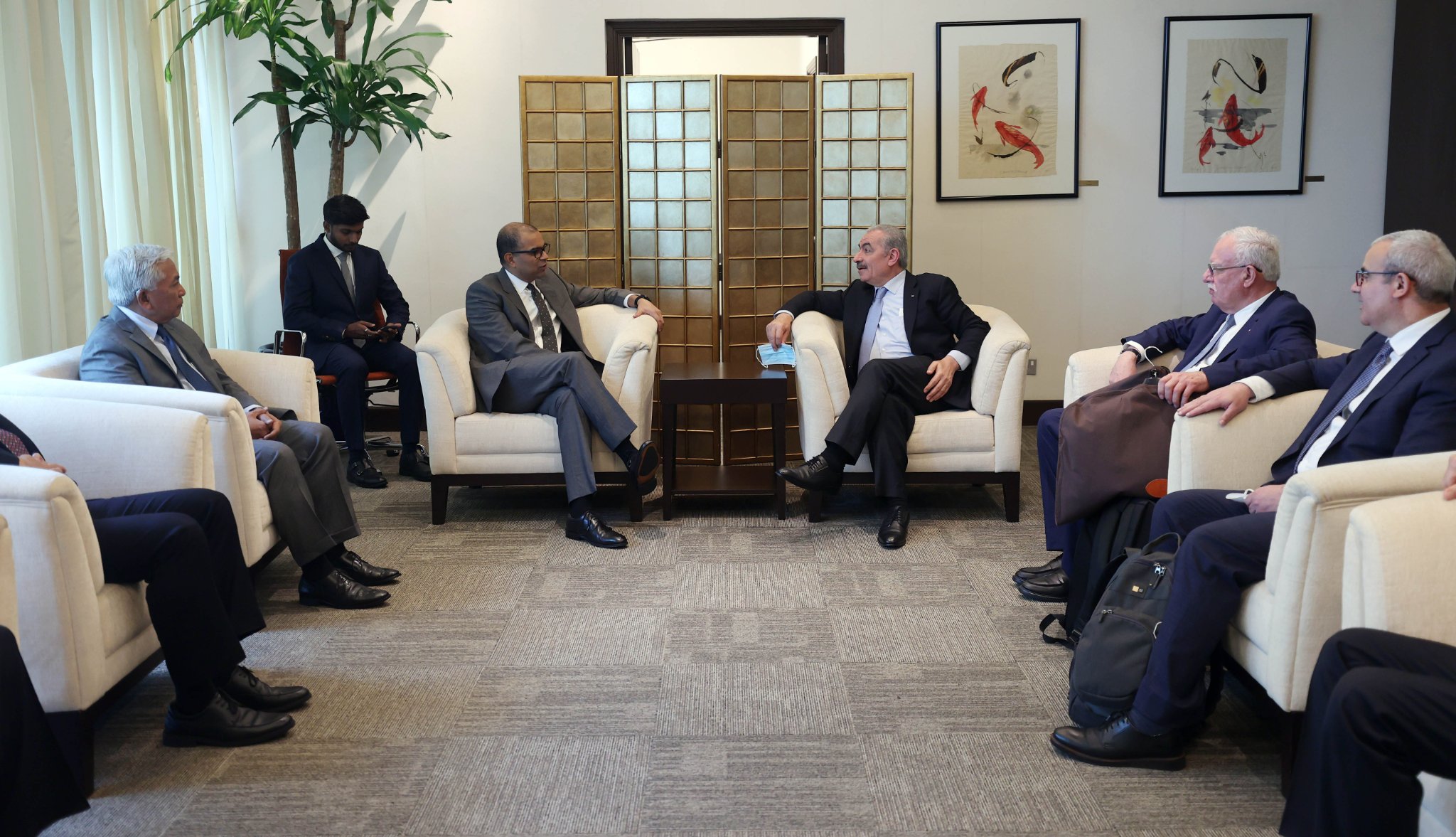 26/10/2022 - سنغافورة - وصل رئيس الوزراء د.محمد اشتيه إلى سنغافورة في زيارة رسمية لتعزيز العلاقات الثنائية و التعاون المشترك ، حيث سيلتقي رئيسة الجمهورية و رئيس الوزراء و عدد من المسؤولين.