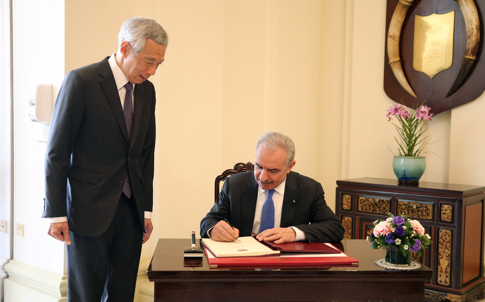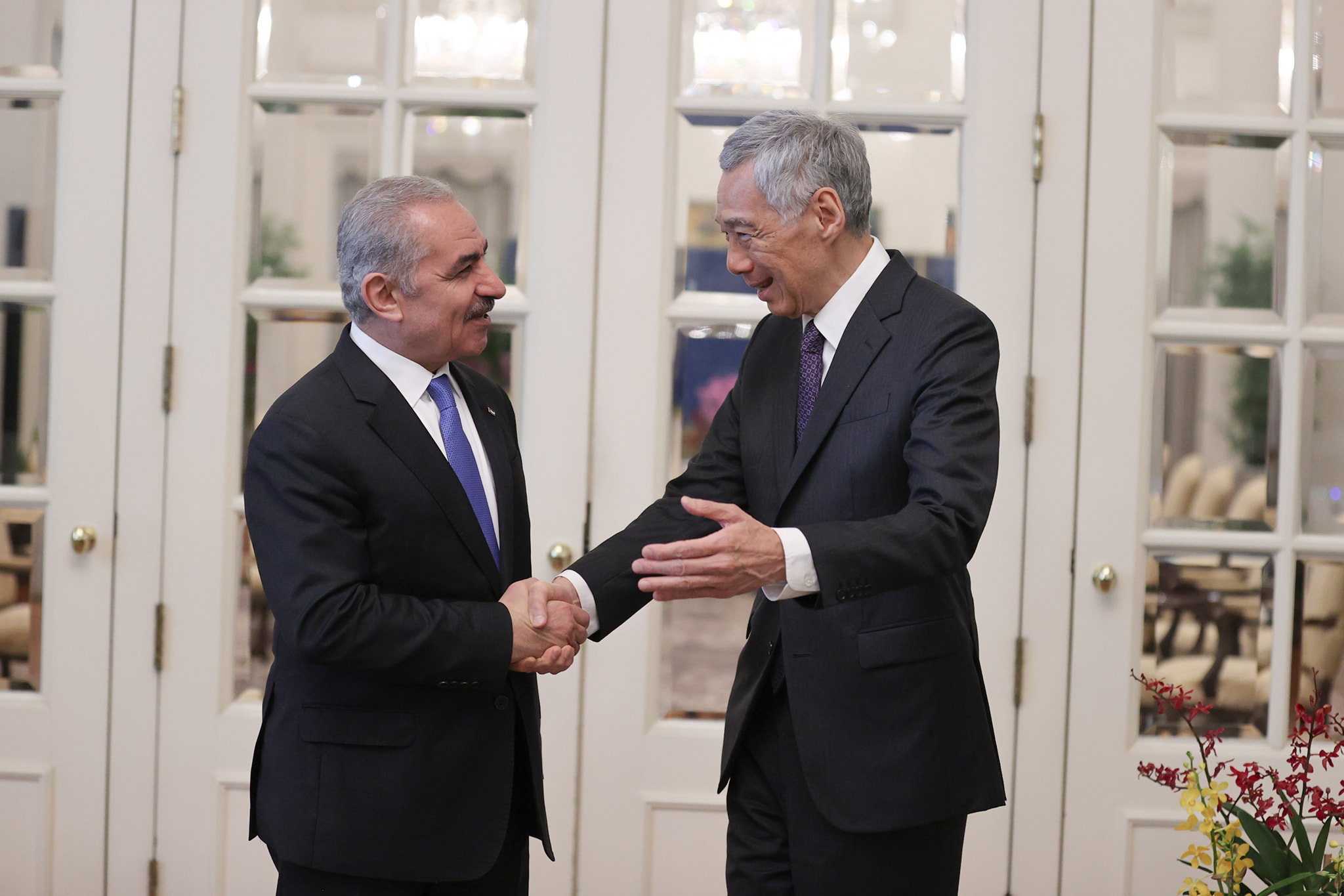 27/10/2022 - سنغافورة - رئيس الوزراء د.محمد اشتيه ، يلتقي نظيره السنغافوري لي هسين لونغ ، لبحث برامج التعاون القائمة مع سنغافورة ، من أجل تطويرها و البناء عليها ، وفتح آفاق جديدة ما بين البلدين على كافة الأصعدة ، و ذلك اليوم الخميس في مقر الرئاسي في العاصمة السنغافورية