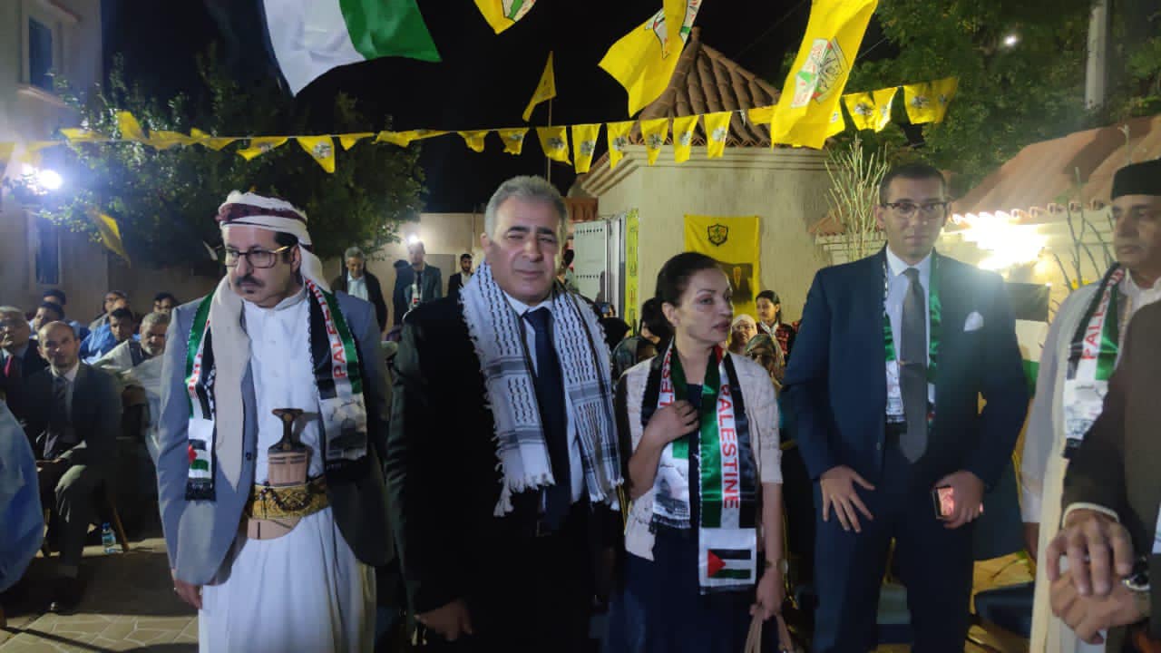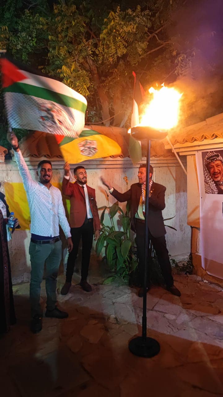 08/01/2023 - نواكشوط - احييت حركة فتح اقليم موريتانيا بالتعاون مع سفارة دولة فلسطين لدى موريتانيا الذكرى ٥٨ لانطلاقة الثورة الفلسطينية انطلاقة حركة فتح في مقر سفارة دولة فلسطين حيث حضر هذة التظاهرة السلك الدبلوماسي العربي و على رأسهم عميد السلك الدبلوماسي سفير جمهورية اليمن و رؤساء و ممثلي الاحزاب السياسيةالموريتانية و ممثلي منظمات المجتمع المدني و المرأة الموريتانية و ممثلي وسائل الاعلام و رئيس و ابناء الجالية الفلسطينية و رئيسة و اعضاء اتحاد الاطباء الفلسطينيين و رئيس و اعضاء البعثة الشرطية و امين سر و اعضاء لجنة الاقليم و ابناء الحركة العلاقة فتح و القيت الكلمات حيث القى سفير دولة فلسطين كلمة بهذة المناسبة و القنصل اللبناني و امين سر حركة فتح و استهل الحفل بتلاوة من آيات الذكر الكريم و النشيدين الفلسطيني و الموريتاني و تم اشعال الشعلة و اطفاء الشمعة بهذة المناسبة