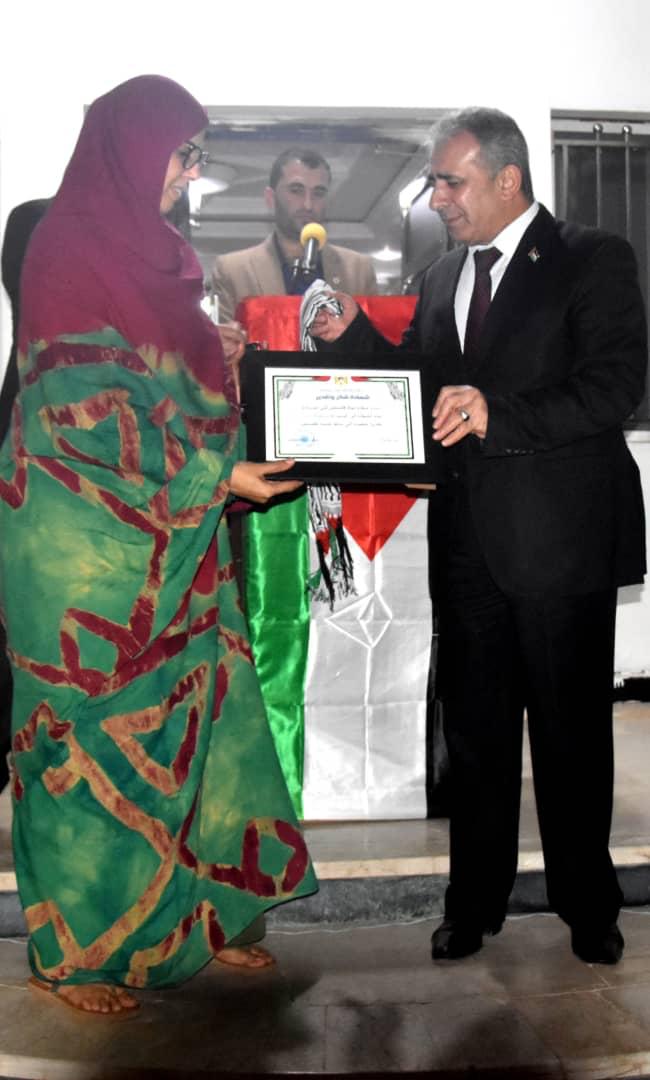 وخلال يوم الأفطار الرمضاني تم تكريم شخصيات نسائية موريتانيا و فلسطينية من قبل سفارة دولة فلسطين لدى موريتانيا حيث انه صادف يوم المرأة العالمي ، و ذلك تكريما للمرأة الموريتانية و الفلسطينية على ما قدمته و ما زالت تقدمه من نجاحات و انجازات على كافة المجالات و الأصعد ، و عوائل اساتذة البعثة التعليمية في موريتانيا الذي توفاهم الله .