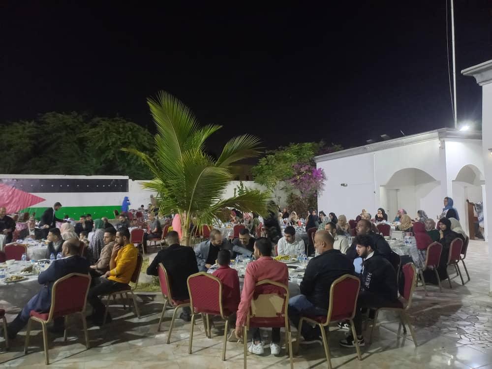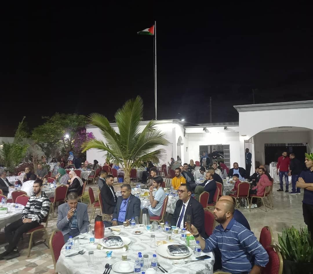 احيت سفارة فلسطين لدى موريتانيا ممثلة بسعادة السفير د.محمد الأسعد و طاقم السفارة افطارها الرمضاني السنوي لابناء الجالية الفلسطينية في موريتانيا بحضور بعثة الشرطة الفلسطينية و اقليم فتح و شخصيات موريتانية و مجموعة نسائية وذلك مساء يوم الاثنين الموافق ١٠ أبريل و ١٩ من رمضان في مقر اقامة السفير بنواكشوط وقدم سعادة السفير التهاني والتبريكات بحلول شهر رمضان الفضيل وتم الحديث عن التطورات في وطننا فلسطين خاصة الهجمة الشرسة من حكومة الاحتلال و قطعان المستوطنين في المسجد الاقصى المبارك و حرمان شعبنا من ابسط حقوقه في حرية العبادة في هذا الشهر الفضيل وتم توضيح ما يرمي اليه نتنياهو و بن غفير من مؤامرة التقسيم المكاني و الزماني في المسجد الاقصى. وقد اكد سعادة السفير على تمسك شعبنا بنضاله حتى تحرير ارضه واقامة دولته و عاصمته القدس الشريف وقد صادف شهر رمضان هذا العام عدة مناسبات وطنية و بالتحديد ذكرى يوم الارض الخالد و يوم المرأة العالمي ويوم الاسير الفلسطيني ويوم الطفل و ذكرى استشهاد خليل الوزير ابو جهاد وقد تطرق سعادة السفير لهذه المناسبات و أكد على تمسكنا بارضنا وهويتنا وحرص القيادة الفلسطينية على الوقوف مع الاسرى و ان هذا الملف يعتبر ملفا مفتوح لجميع تجاذبات العمل الفلسطيني وتؤكد على ان دماء شهدائنا وعذابات اسرانا وجرحانا ما هي الا طريقنا نحو الحرية والاستقلال .