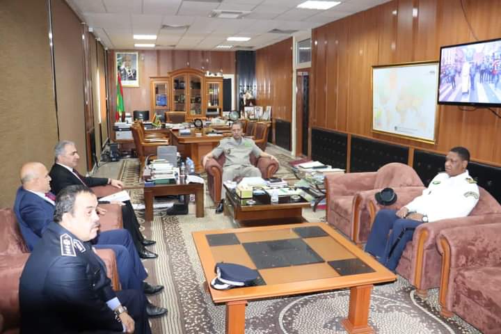 11/04/2023-نواكشوط-استقبل سيادة الفريق ميسغارو ولد سيدي (المدير العام للامن الوطني الموريتاني )صباح اليوم الثلاثاء 11 ابريل بمكتبه بمباني الادارة العامة للامن الوطني الدكتور محمد الاسعد سفير دولة فلسطين لدى موريتانيا و الوفد المرافق سيادة العميد اكرم ثابت رئيس البعثة الشرطية الفلسطينية و العميد ماجد اسليم. تناول الاجتماع العلاقات الثنائية و الامور ذات الاهتمام المشترك
