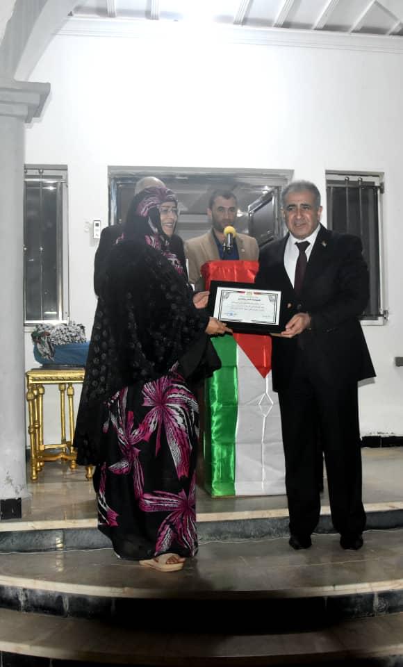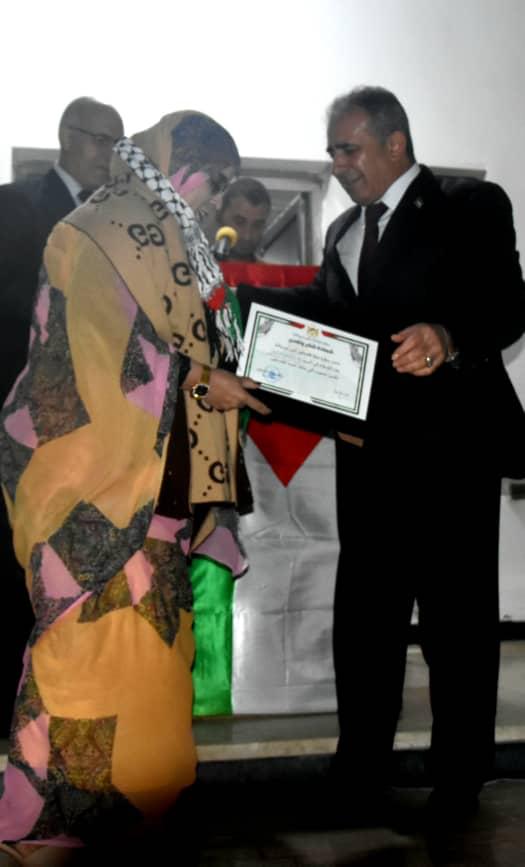 في هذا اللقاء تم تكريم شخصيات فلسطينية قدمت خدمات جليلة للشعب الموريتاني من خلال بعثات دبلوماسية خدماتية ساهمت بكثير في تطوير العلاقة الفلسطينية الموريتانية و مدى تبادل الخبرات و من أهم هذه الخدمات ما قامت به البعثة التعليمية الفلسطينية في موريتانيا ، كما قدر و ثمن جهود نساء موريتانيات لعبن دورا كبيرا للقضية الفلسطينية و للفلسطينيين و منحت لهن أوسمة تقدير و تكريم .