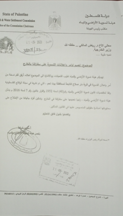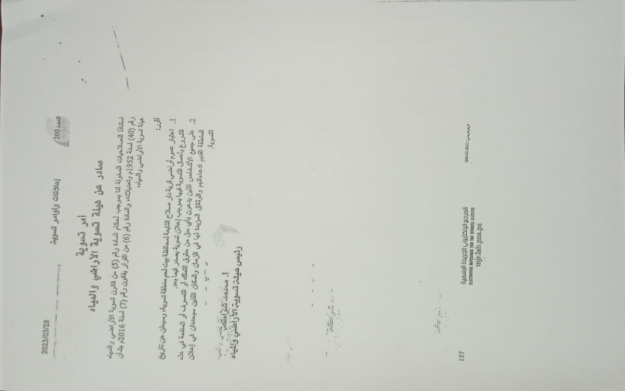 تعميم اوامر واعلانات التسوية في قرية دار صلاح التابعة لمحافظة بيت لحم