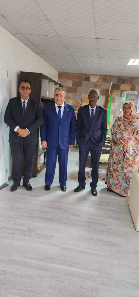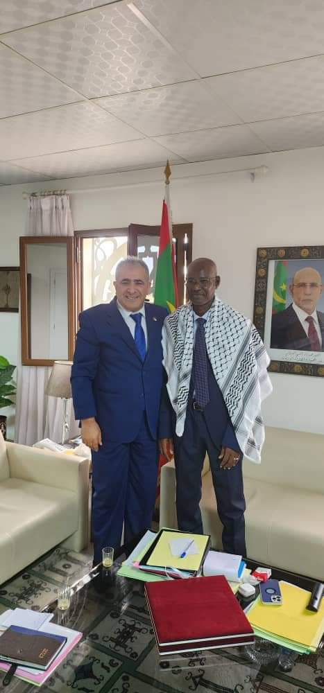 استقبل وزير التعليم العالي والبحث العلمي معالي الوزير السيد/ انيانغ مامودو صباح اليوم الخميس 17 اغسطس 2023 سعادة الدكتور محمد الاسعد سفير دولة فلسطين لدى موريتانيا و الوفد المرافق له المستشار :زكي قديح و الاخ : جمال الدين الصباح. وتناول اللقاء علاقات التعاون بين البلدين الشقيقين في مجالات التعليم العالي والبحث العلمي.