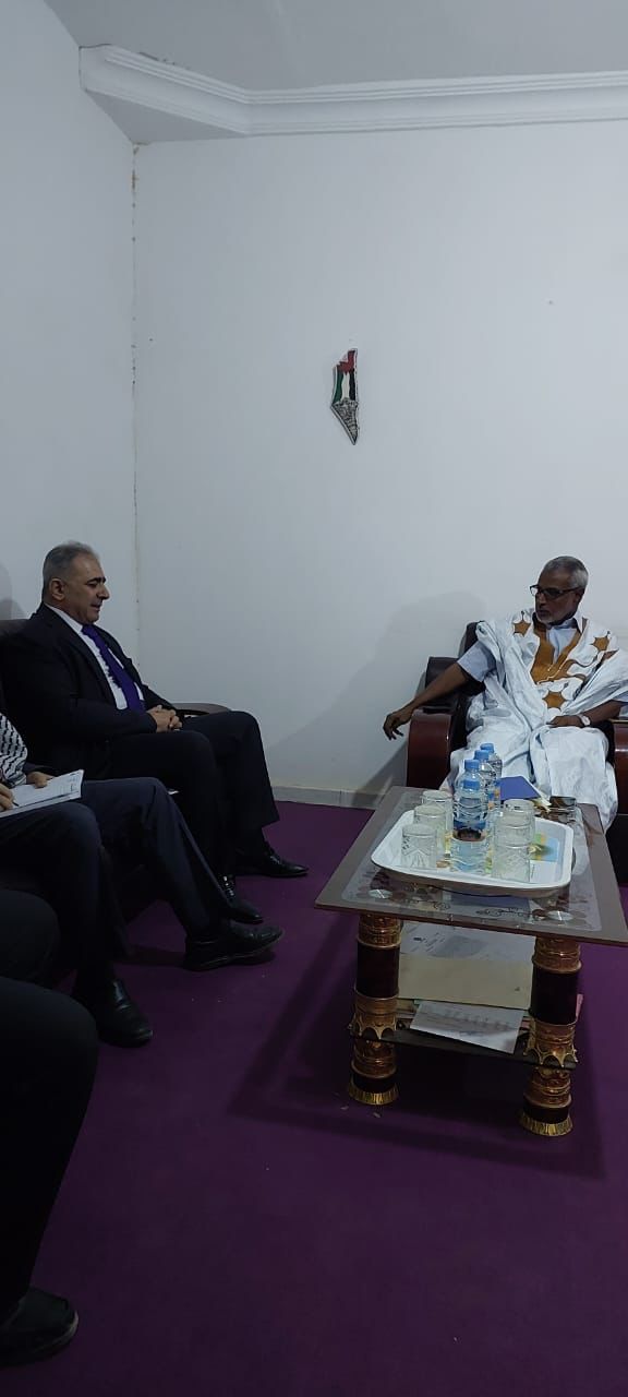 التقي سفير دولة فلسطين د. محمد الأسعد برفقة المستشار الأول د. قصي الماضي و المستشار زكي قديح و الأخ جمال الدين الصباح مع رئيس حزب الاتحاد و التغير الموريتاني و رئيس اللجنة العليا السياسية للأحزاب الموريتانية المولاة والمعارضة و رئيس لجنة التبرعات للشعب الفلسطيني و رئيس حزب الاتحاد والتغيير الموريتاني (حاتم)وذلك يوم الاثنين الموافق 13/11/2023 .