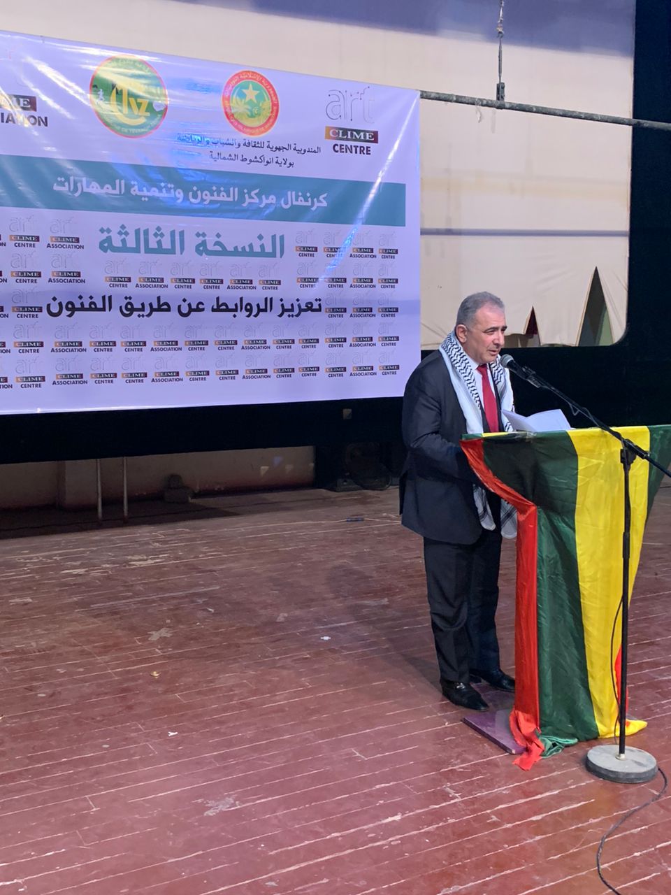 21/11/2023 - نواكشوط - استمرار التضامن مع ألشعب الفلسطيني ضد العدوان الغاشم على شعبنا الفلسطيني و خاصة قطاع غزة ،دعت جمعية الفنون و التراث الشعبي الموريتانية لتظاهرة في مركز النقابات حيث القيت الكلمات و رفعت الشعارات و تم تسليط الضوء على المجازر التي ارتكبها الاحتلال الاسرائيلي و خاصة اطفال فلسطين حيث يصادف ٢٠ نوفمبر اليوم العالمي للطفل