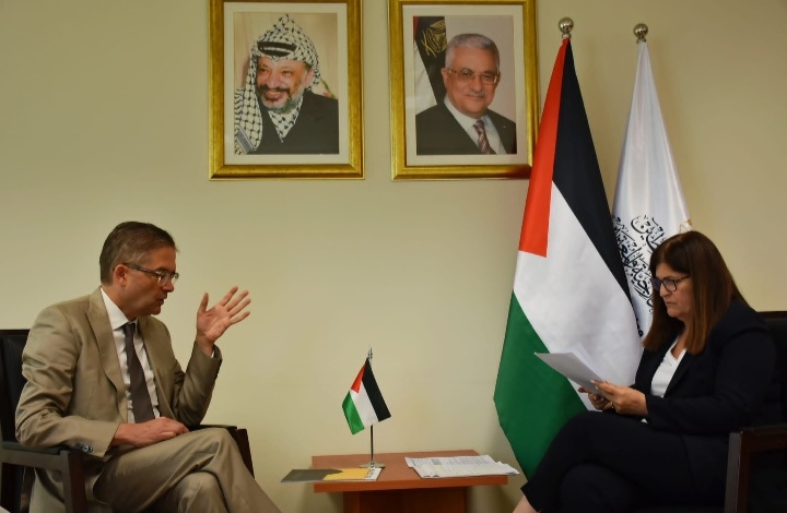 الوزيرة شاهين تلتقي ممثل الاتحاد الأوروبي لدى فلسطين ويبحثان تطورات الأوضاع