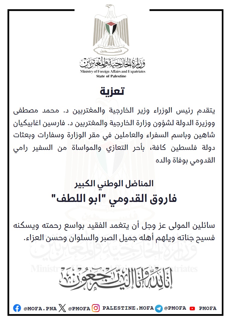 تعزية بوفاة القائد الوطني / فاروق الفدومي ( ابو اللطف)