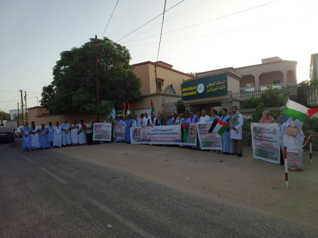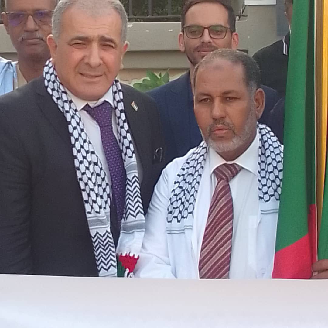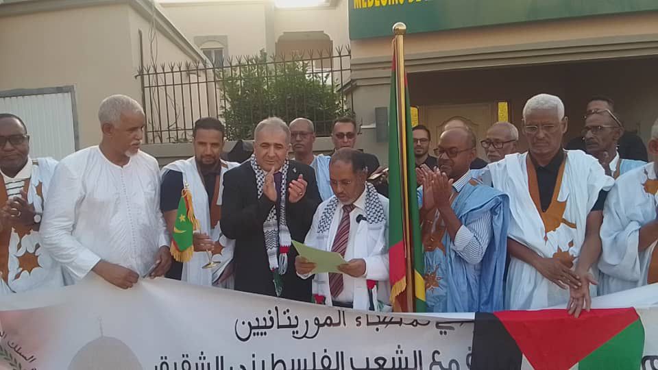 وشارك في الوقفة، سفير دولة فلسطين لدى موريتانيا محمد قاسم الأسعد وطاقم من السفارة.