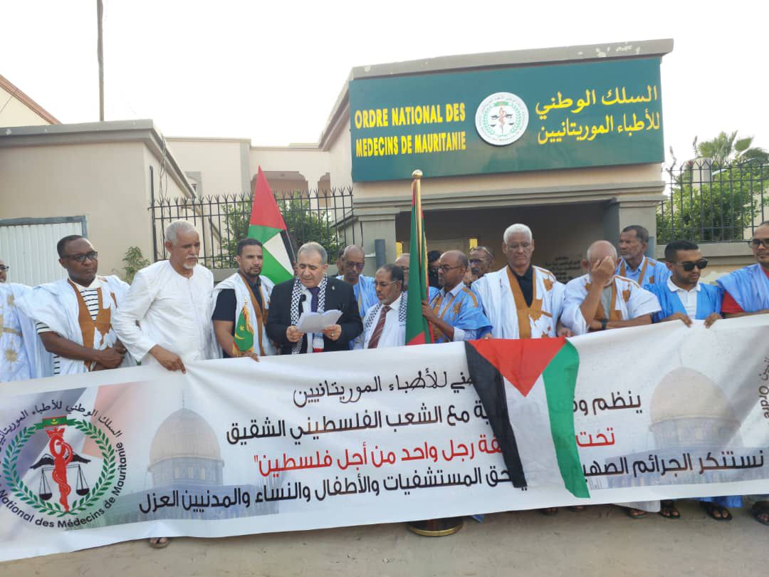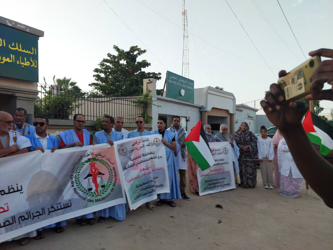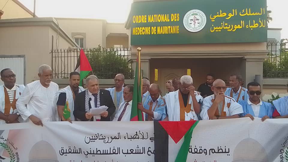 نواكشوط 8-10-2024 - نقلاً عن وكالة وفا- نظم السلك الوطني للأطباء الموريتانيين، اليوم الثلاثاء، وقفة احتجاجية أمام مقره في العاصمة نواكشوط، "أدان فيها الإبادة التي يتعرض لها الأبرياء على يد قوات الاحتلال الإسرائيلي في غزة ولبنان".