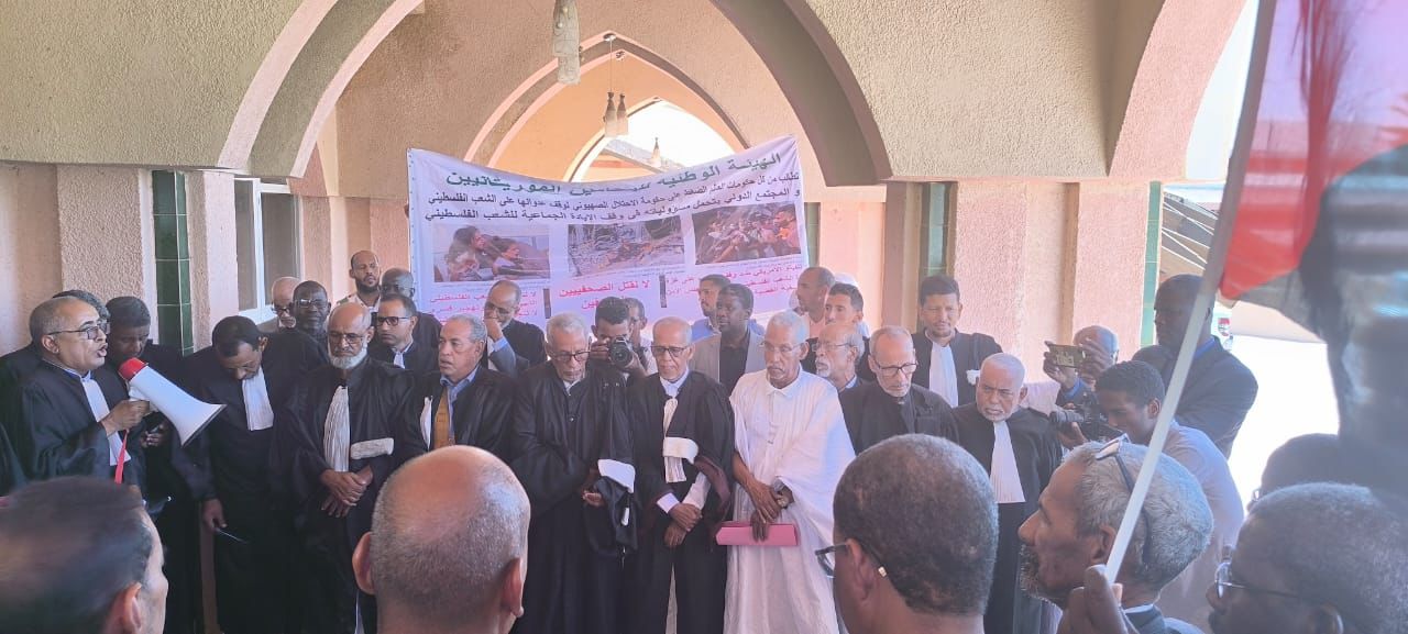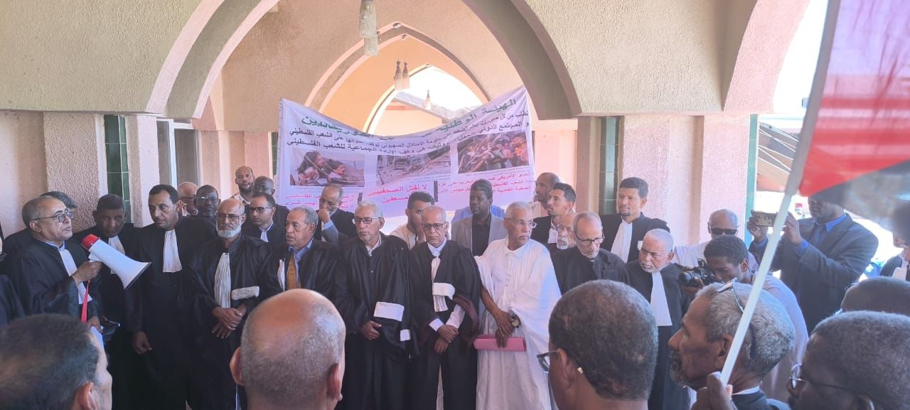 نواكشوط – نقلاً عن الحرية نت: نظمت نقابة المحامين الموريتانيين وقفة تضامنية مع الشعب الفلسطيني تزامنا مع سنة على حرب الابادة الجماعية التي حولت مسار القضية الفلسطينية بعد أن حيكت العديد من المؤامرات للقضاء عليها.