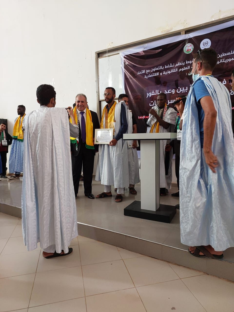 من الطرف الموريتاني حضر نائب عميد كلية العلوم القانونية والاقتصادية ورئيس واعضاء الهيئة التنفيذية للاتحاد العام لطلبة موريتانيا وحشد كبير من الطلاب الموريتانيين