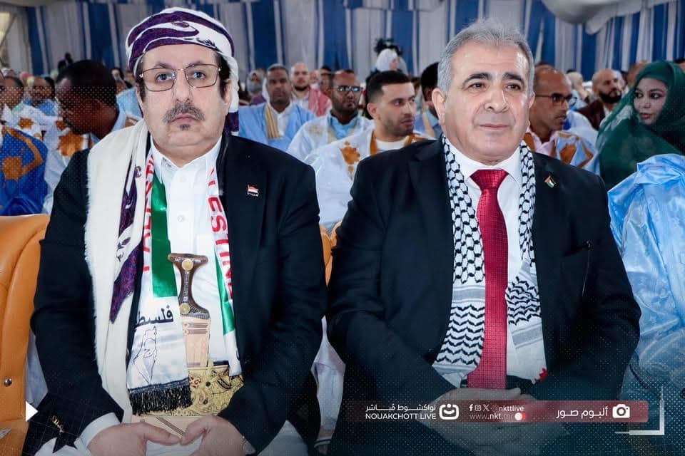 منصة لعيون الإخبارية - 06/12/2024 - بمناسبة الذكرى ال36 لإعلان قيام الدولة الفلسطينية نظمت سفارة فلسطين فى نواكشوط حفلا فى قاعة أمباصدور حضره وزير الخارجية السيد محمد سالم ولد مرزوگ ومنسقة الأمم المتحدة فى نواكشوط السيدة ليلى بيترس، وأعضاء السلك الدبلوماسي ورؤساء الاحزاب السياسية ونخبة من المجتمع المدني