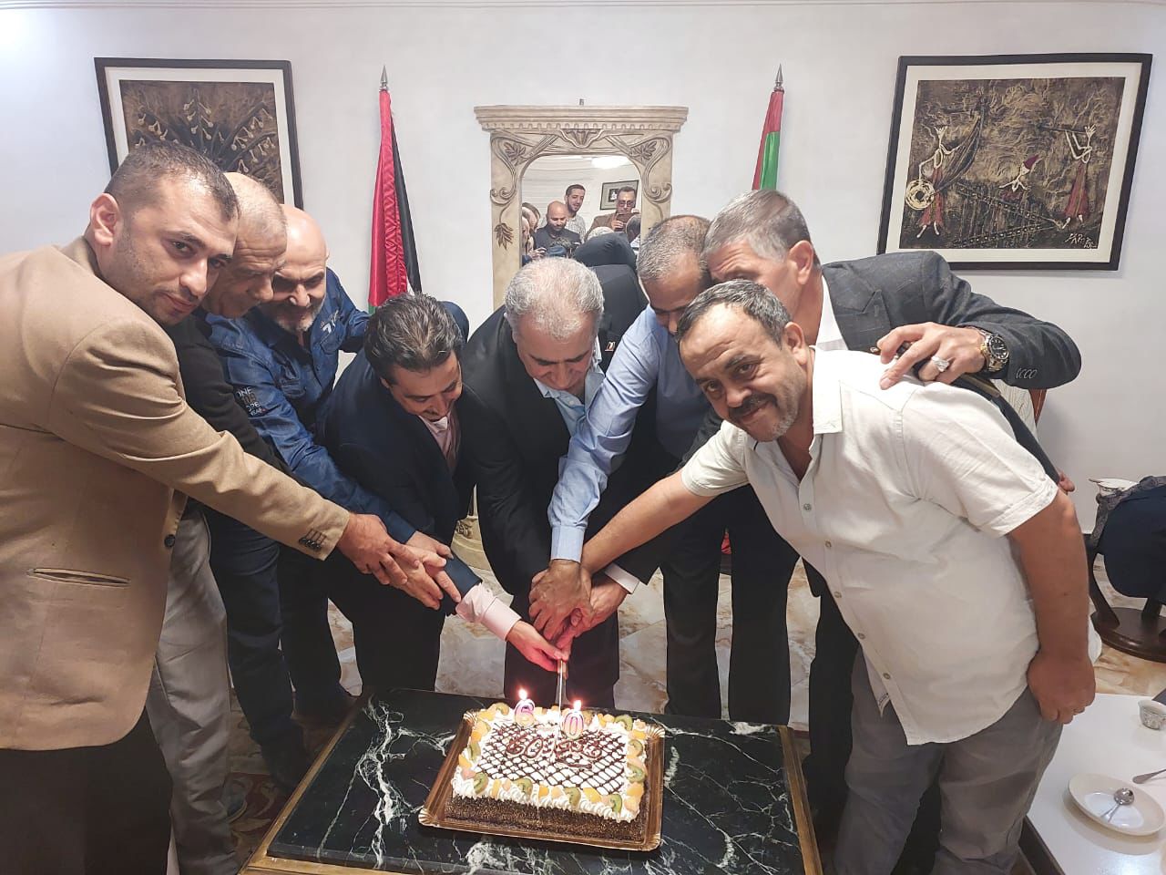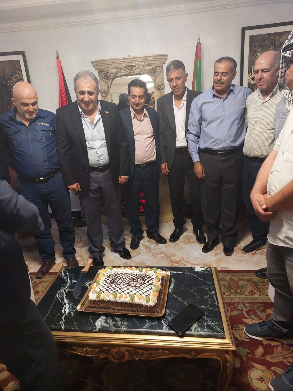 طاقم السفارة و حركة فتح و الجالية الفلسطينية و بعثة الشرطة الفلسطينية و الضيف الاخ هيثم عمر يحتفلون بالذكرى 60 لانطلاقة الثورة الفلسطنية