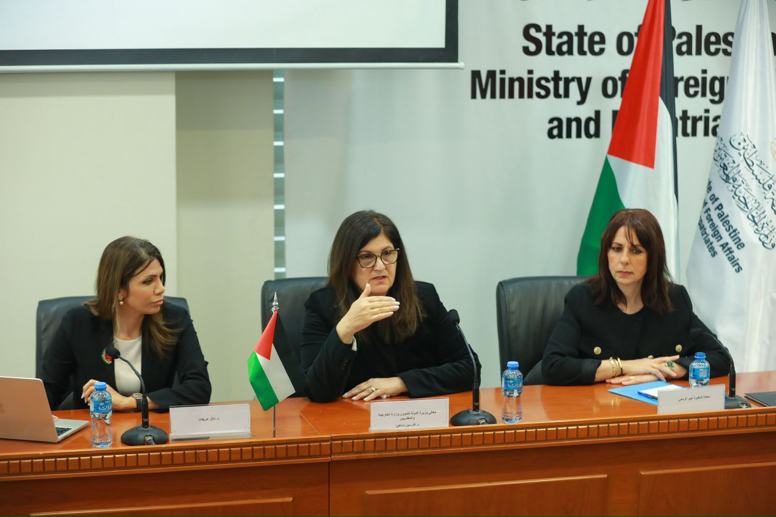 واستعرض عدد من مدراء وممثلي القطاعات والإدارات والوحدات في الوزارة طبيعة الجهود التي تبذلها الوزارة على صعيد تعزيز العلاقات الثنائية بين دولة فلسطين ودول العالم عبر عقد جلسات المشاورات السياسية، واللجان الحكومية المشتركة، ورصد ومتابعة مواقف الدول تجاه القضية الفلسطينية، وكذلك تم الإشارة إلى الحراك المبذول على مستوى العلاقات متعددة الأطراف وتدعيم مسار العدالة وتعزيز الشخصية القانونية لدولة فلسطين في المحافل الدولية، بالإضافة الى الاستراتيجيات التي تتبعها الوزارة فيما يتعلق بالإعلام والدبلوماسية العامة والرقمية، وتأهيل وتدريب الكوادر الدبلوماسية والموظفين الجدد. كما تم التركيز على الخدمات القنصلية التي تقدمها الوزارة للمواطنين الفلسطينيين في الداخل والخارج بالتعاون مع سفارات وبعثات وقنصليات دولة فلسطين، والمتابعة مع جهات المختصة في فلسطين لإنجاز معاملات مواطنينا.
