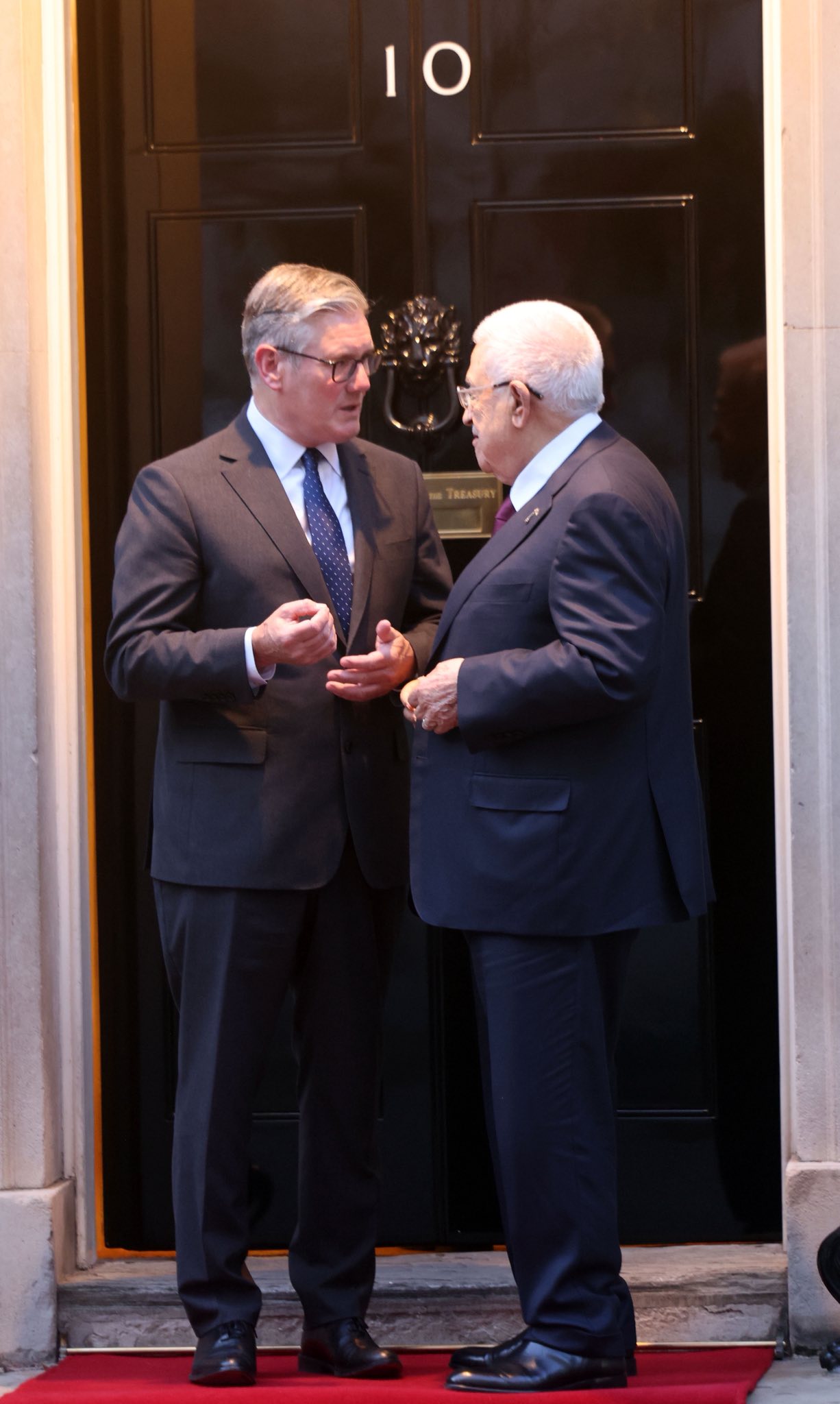 وأعرب الرئيس عباس عن تقديره العميق لرئيس الوزراء ستارمر، والجهود الكبيرة التي يبذلها من اجل السلام، مؤكداً شكره لمواقف الحكومة البريطانية وجهودها المتواصلة لتحقيق وقف إطلاق نار مستدام، وضمان إدخال المساعدات الإنسانية إلى قطاع غزة، ورفض التوسع الاستيطاني وعنف المستوطنين وسياسة الضم، والعمل الجاد من أجل تنفيذ حل الدولتين. كما ثمّن بشكل خاص القرار التاريخي للمملكة المتحدة نيتها بالاعتراف بدولة فلسطين قبل مؤتمر السلام الدولي المزمع عقده في نيويورك في وقت لاحق من الشهر الجاري، واصفاً إياه بأنه خطوة تصحيحية لظلم تاريخي وفتحٌ لأفق جديد نحو تحقيق سلام عادل ودائم في المنطقة.