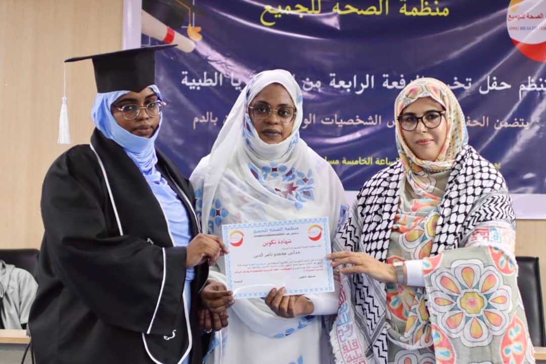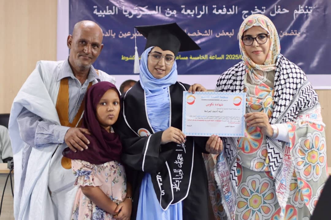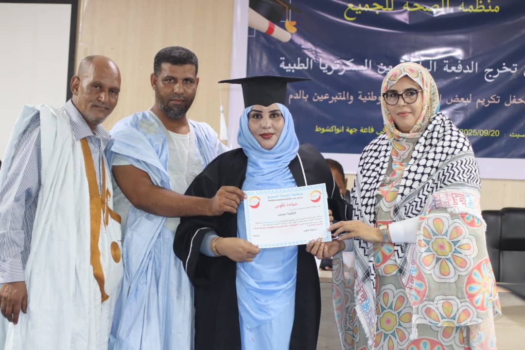 شاركت مسؤولة العلاقات العامة والمرأة بسفارة دولة فلسطين، ممثلةً عن سعادة السفير بشير أبو حطب، مساء السبت 20 سبتمبر 2025، في حفل تخرج الدفعة الرابعة من تخصص السكرتيريا الطبية، المنظم من قبل منظمة الصحة للجميع، وذلك بقاعة المؤتمرات بمباني جهة نواكشوط.