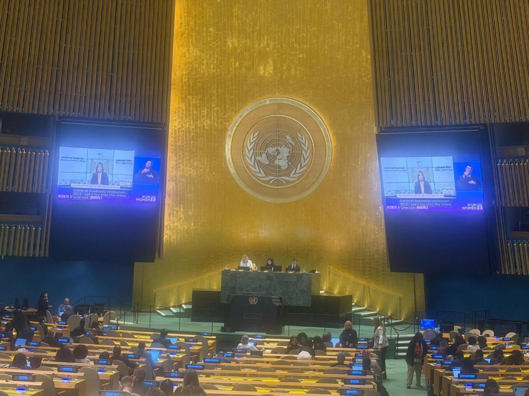 نيويورك 10-3-2026 وفا- ألقت وزيرة شؤون المرأة منى الخليلي كلمة دولة فلسطين خلال أعمال الدورة السبعين للجنة وضع المرأة في الأمم المتحدة، استعرضت فيها واقع المرأة الفلسطينية في ظل استمرار الاحتلال الإسرائيلي، والتحديات المركبة التي تواجهها في حياتها اليومية.